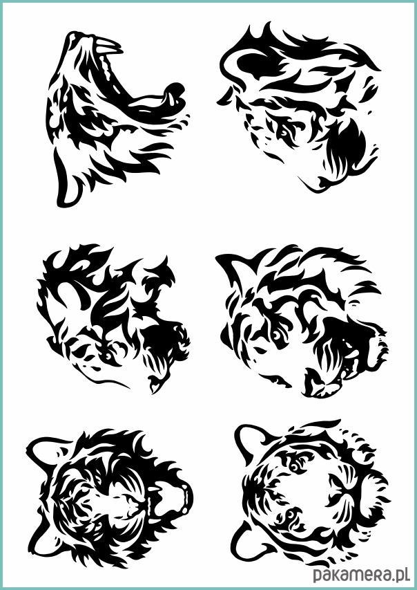 Graficzny wzór z głową tygrysa w różnych pozycjach, to doskonała ozdoba w formie tatuażu zmywalnego dla odważnych osób.