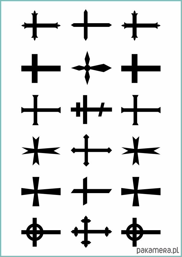 Arkusz tatuażu zmywalnego wypełniony różnymi rodzajami krzyży.