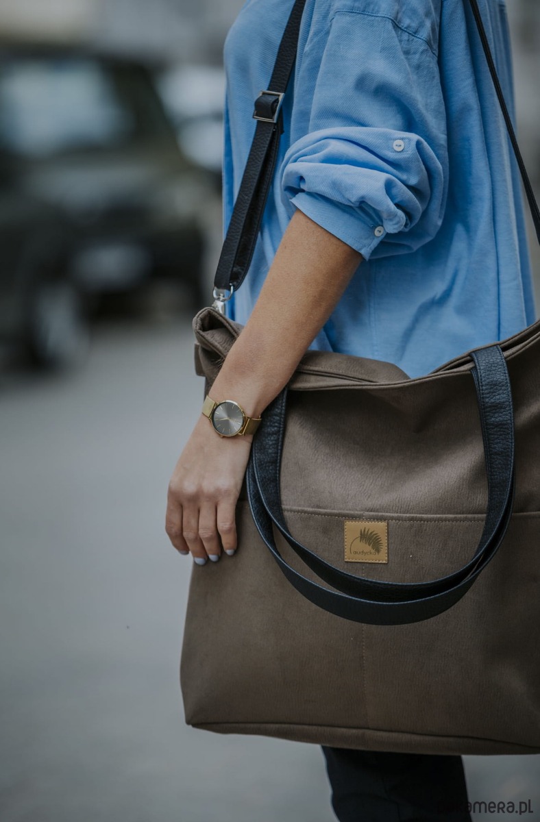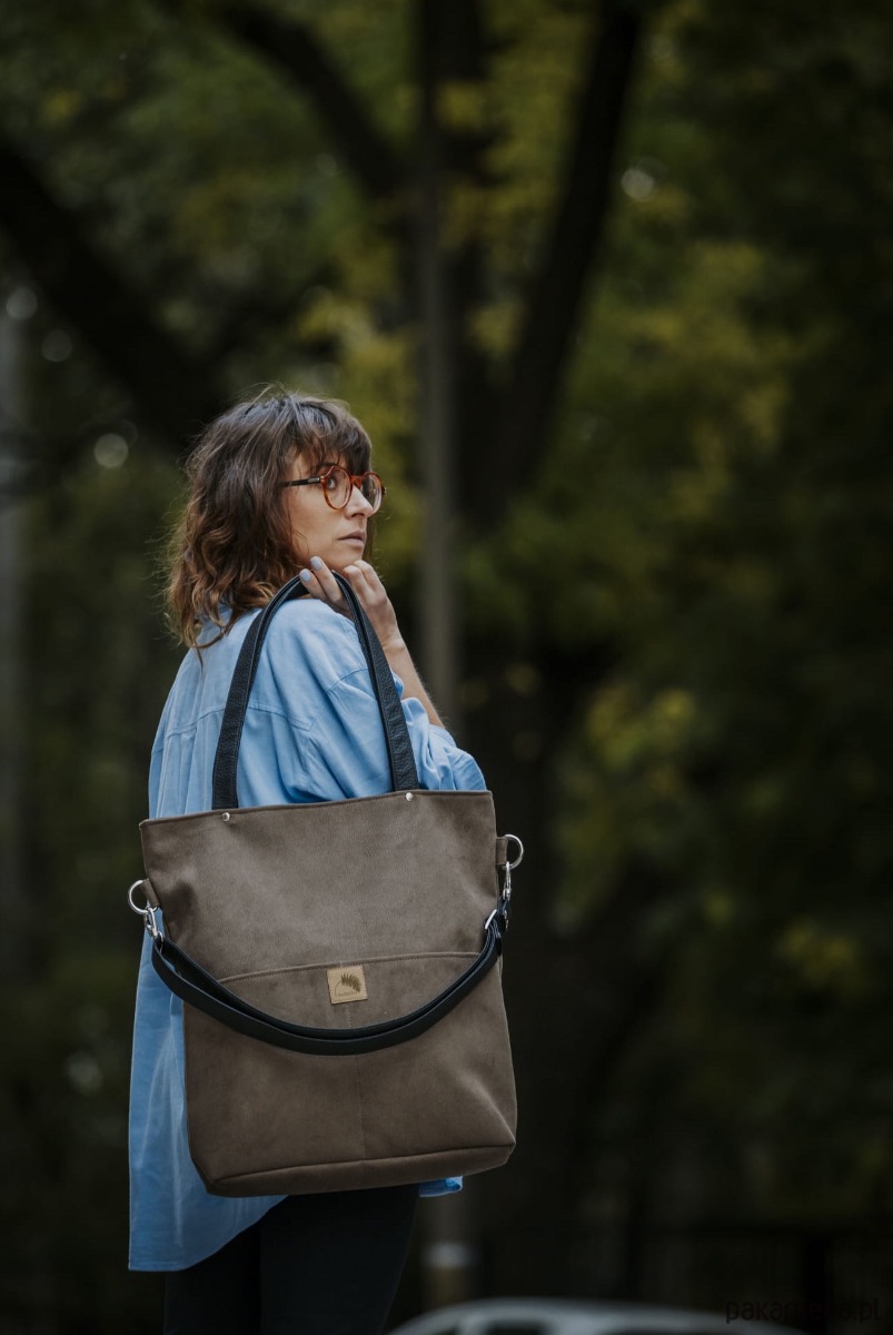 Materiał wierzchni: fantastycznej jakości gruby, wodoodporny, włoski zamsz ekologiczny typu Bukara. Łatwy w utrzymaniu czystości, wytrzymały na ścieranie. Rączki i długi pasek skóra ekologiczna.
