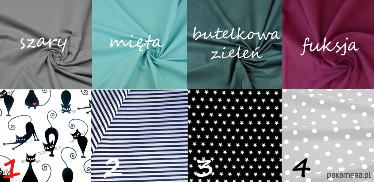 UWAGA! Istnieje możliwość dopasowania podszewki (ostatnie zdjęcie). Przy składaniu zamówienia proszę o wpisanie numeru wybranej podszewki. W przypadku braku informacji szyjemy torebkę z podszewką szarą w kropki lub czarną w gwiazdki.