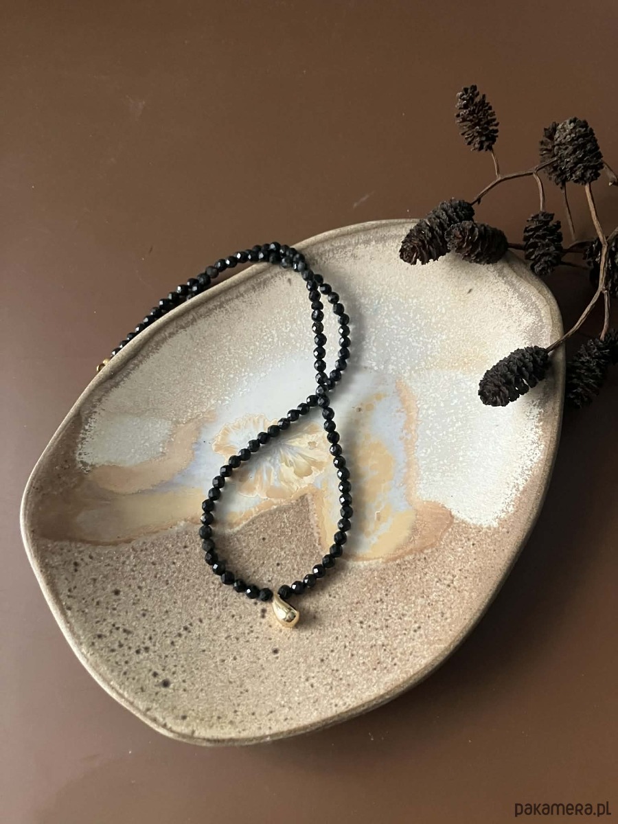 Wykonana na żyłce jubilerskiej, zapięcie klasyczne, wykończenia stal szlachetna - w kolorze złotym