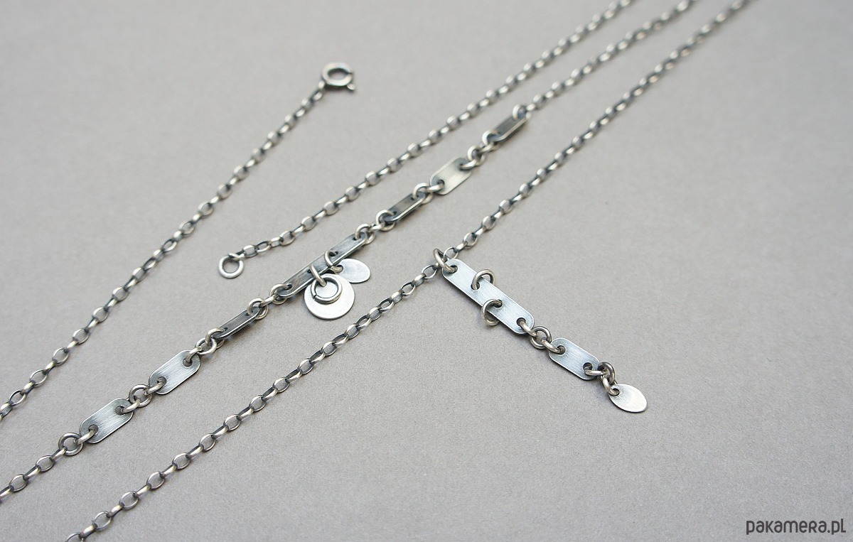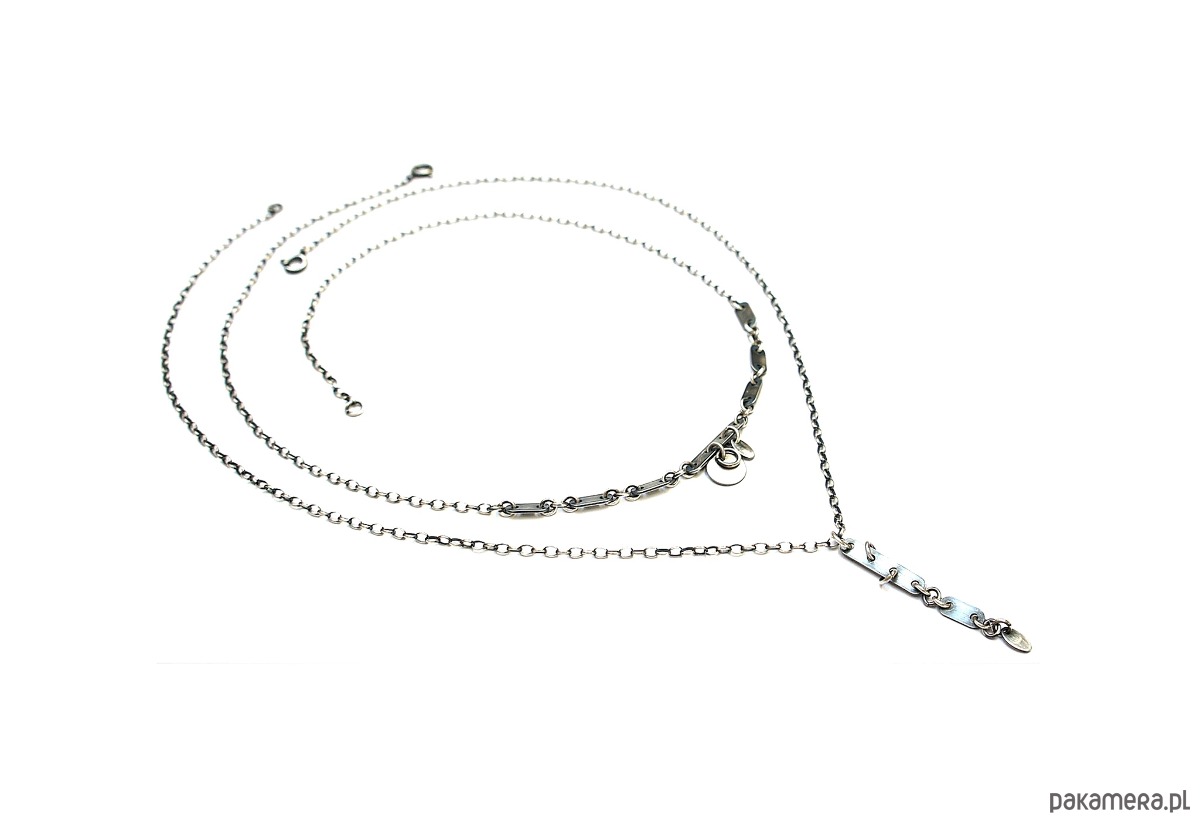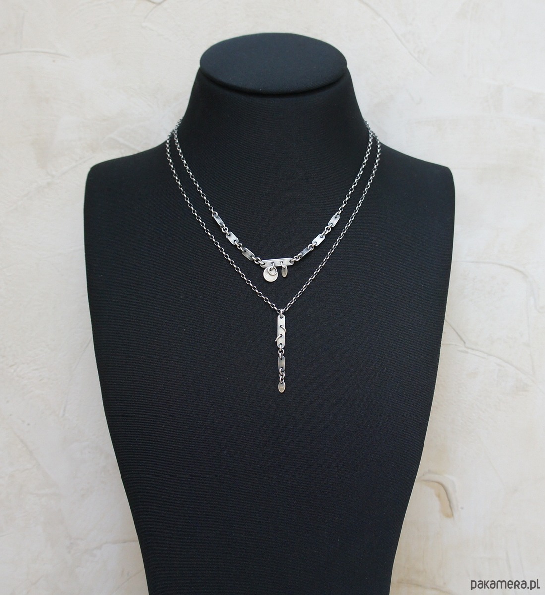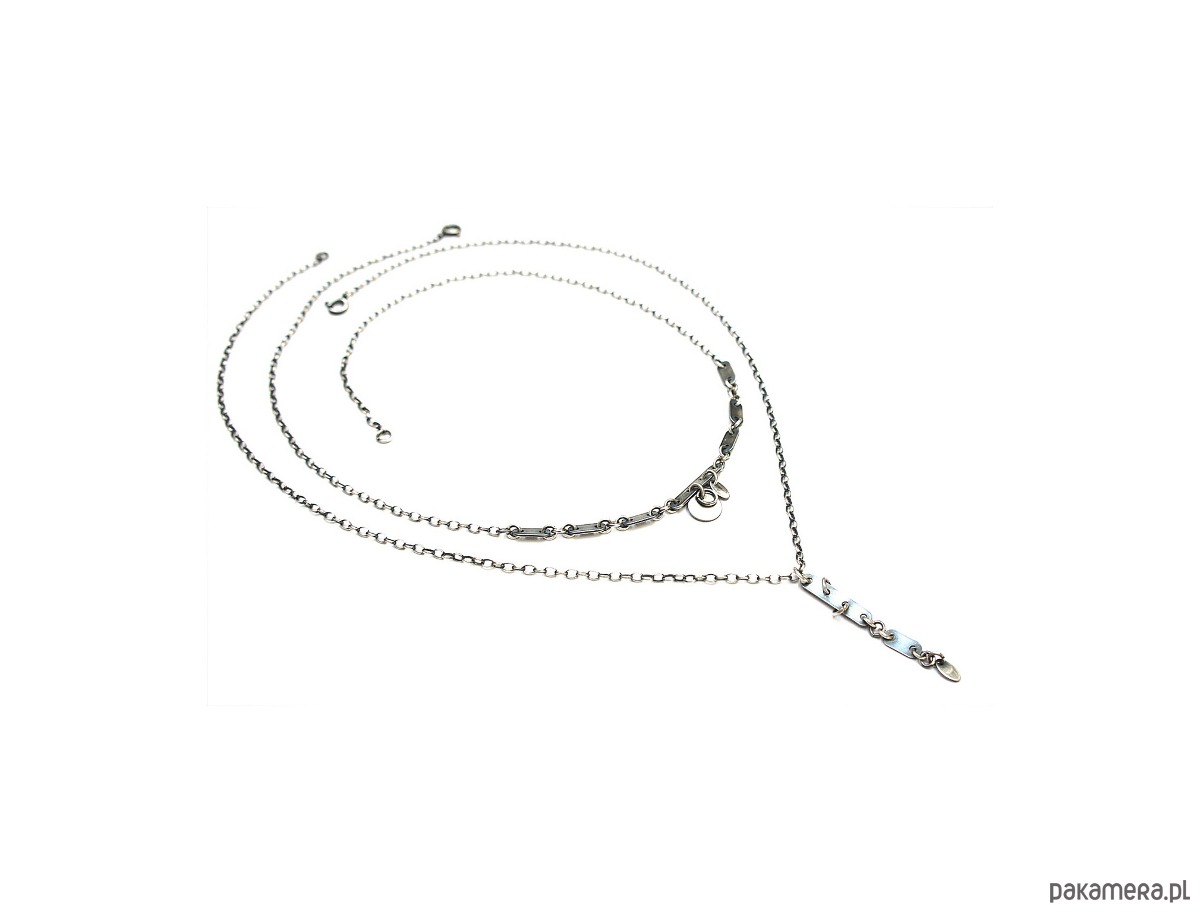 Naszyjnik podwójny wykonany ze srebra pr. 925 . Srebro oksydowane i przetarte. Całkowita długość naszyjników 47cm i 45,5 ccm.Biżuteria ozdobnie zapakowana.