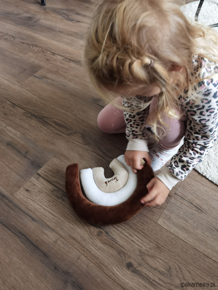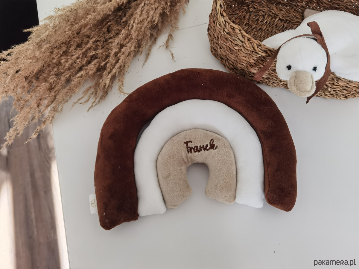 Idealny pomysł na prezent. To zarówno przytulanka, maakotka jak i zabawka-pierwsza układanka oraz ozdoba pokoju. Wykonana z przyjemnego w dotyku materiału minky w ustalonych wcześbiej kolorach. Na tęczy haftujemy imię, możemy też datę urodzenia, wagę dziecka itd. Tęcza składa się z trzech osobnych wałeczków które można w dowolny sposób układać. Idealne do przytulania,zgniatania przez niemowlaka. Może stać się też dajnym gadżetem do zdjęć.