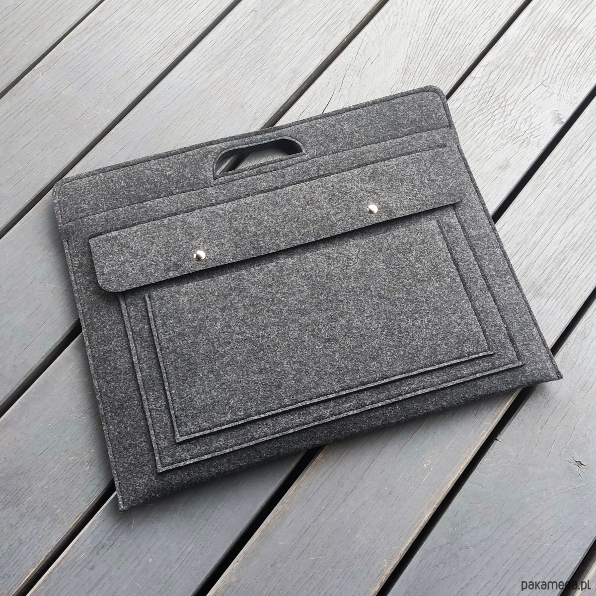 Nasza teczka z filcu to stylowa i ergonomiczna alternatywa dla teczek na dokumenty. Wykonana została z wysokiej jakości filcu poliestrowego. Główna kieszeń, zapinana na dwa wewnętrzne i ukryte napy, z łatwością pomieści blok formatu A3. Z przodu zaś mamy drugą kieszeń zamykaną klapą z dwoma napami. A na niej jedna przedziałowa. Schowamy w nich wszelkie przybory do pisania i akcesoria. Dla wygody noszenia, na górze jest też przeznaczony do tego uchwyt. Prezentowaną teczkę z filcu zamówić można również w innym kolorze.