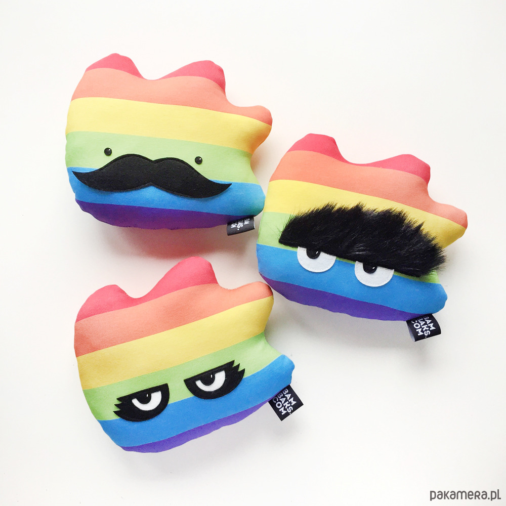 Tęczowa Zaraza uszyta jest z dzianiny pętelkowej drukowanej japońskimi bezzapachowymi atramentami pigmentowymi. Wypchana jest kulką silikonową i ścinkami z naszej bambakowej produkcji, bo tak ekologiczniej jest!