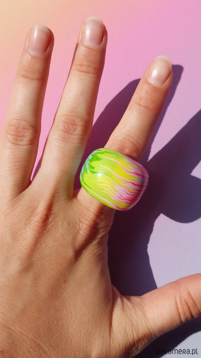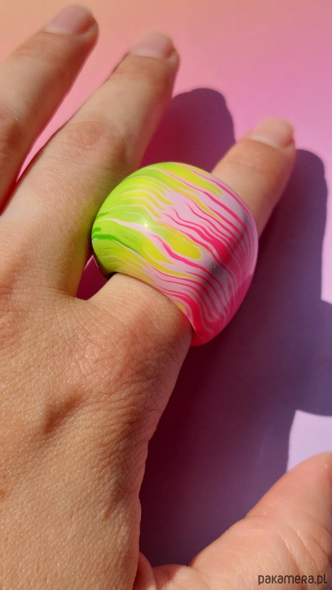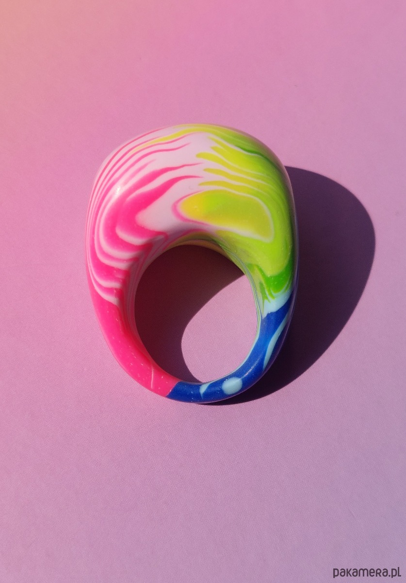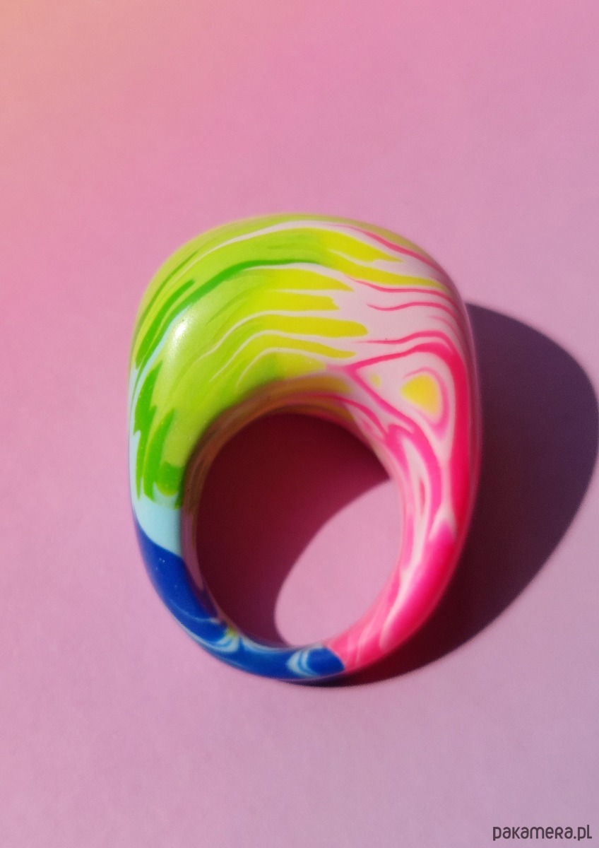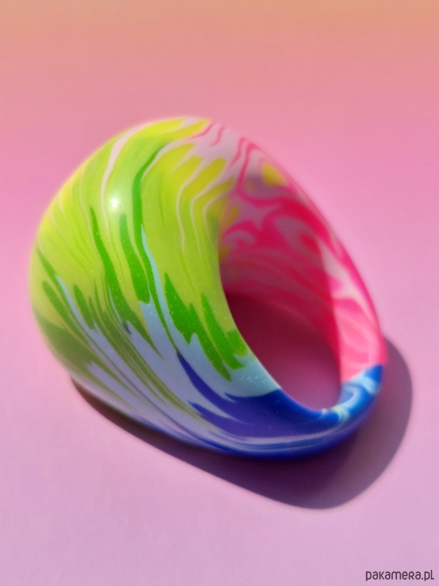 Oryginalny masywny pierścionek w kolorwy abstrakcyjny wzór 🌈