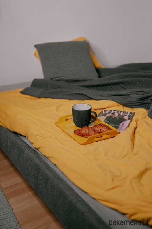 Musztardowa pościel Nocne Dobra to doskonała propozycja do ożywienia stworzenia sypialni. Będzie doskonałym dopełnieniem nowoczesnych czy minimalistycznych wnętrz.