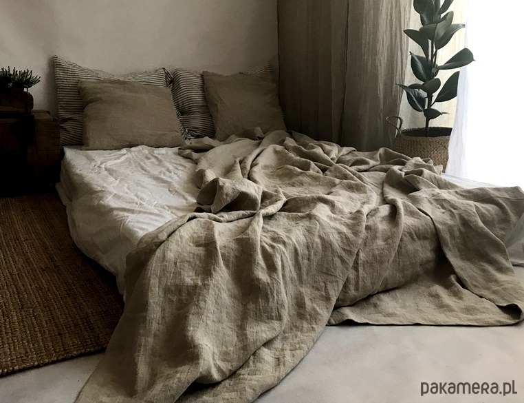 Narzuta uszyta z mięsistego lnu o gr. 230gr. Wykończona listwą. Nada charakter każdemu wnętrzu, a latem z powodzeniem zastąpi kołdrę.