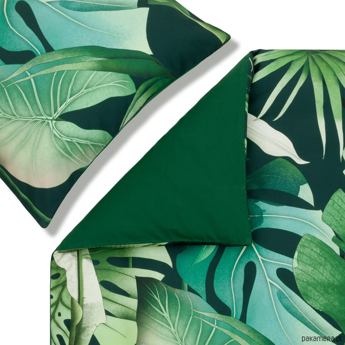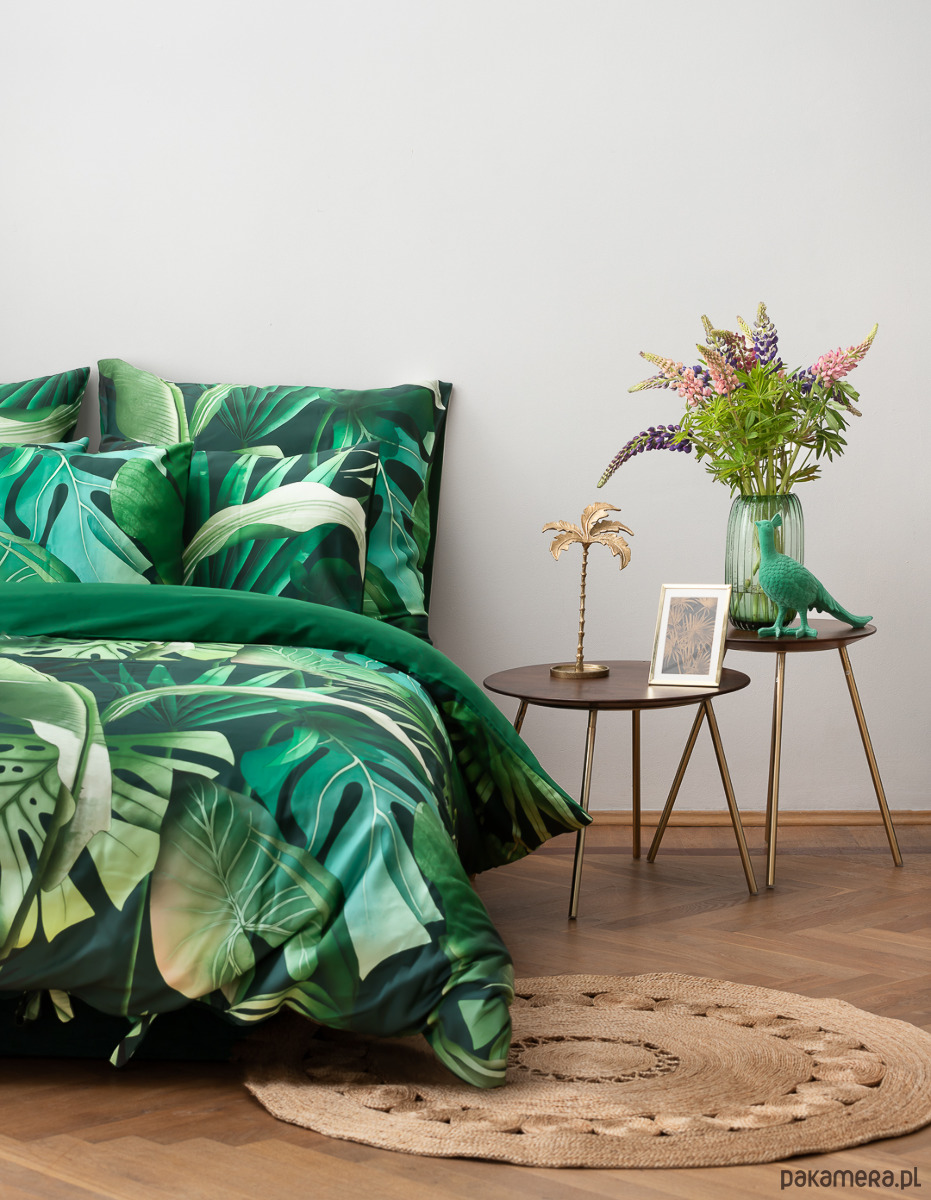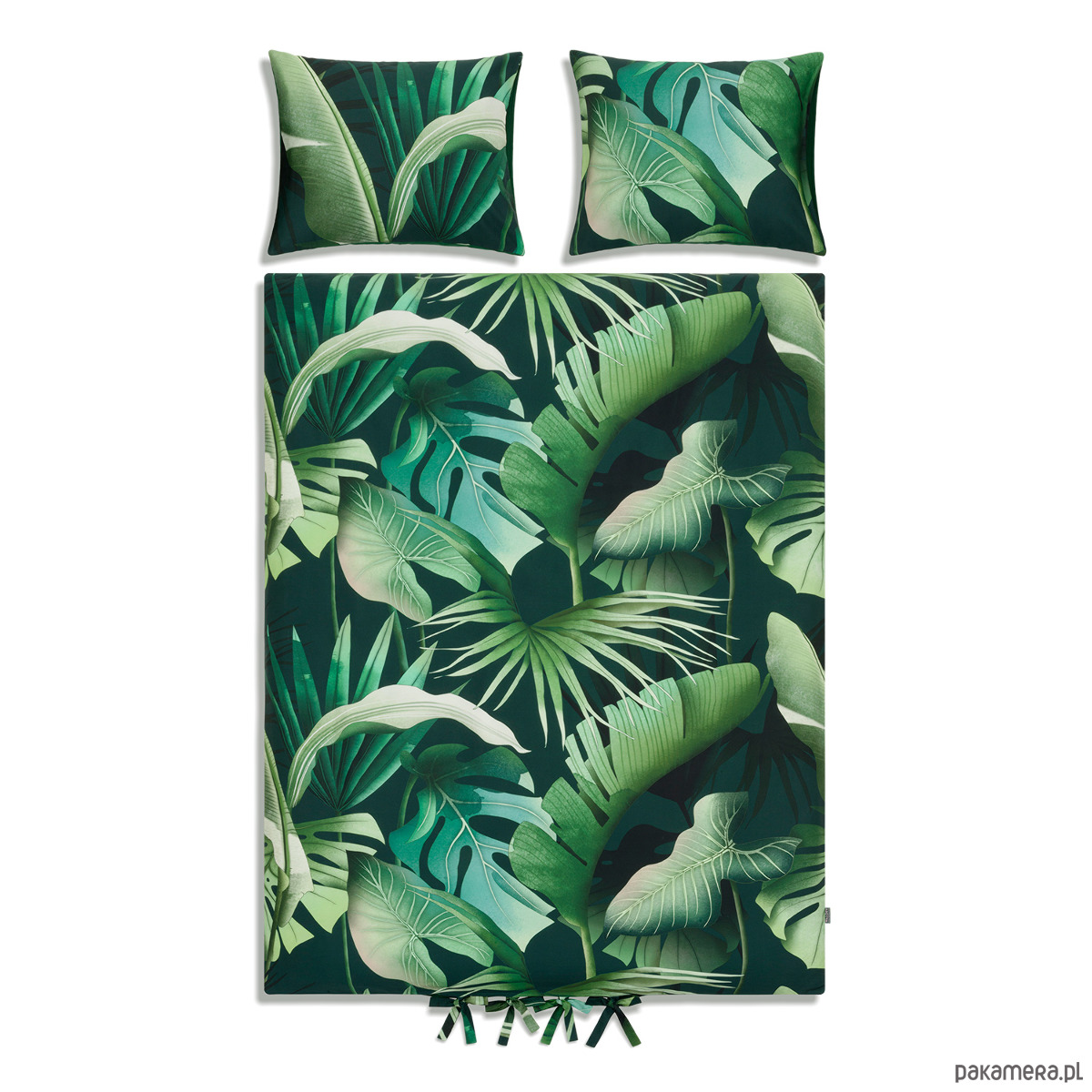 Wzór naszej pościeli to unikatowa kompozycja liści drzew rosnących w odległych tropikalnych lasach. Nie od dziś wiadomo, że odcienie zieleni wpływają na nas niezwykle uspakajającą oraz odprężająco. Dzięki temu wzorowi nasze zmysły oraz wyobraźnia powędrują do tętniącej życiem dżungli zapewniając nam ukojenie nerwów oraz spokojny sen.