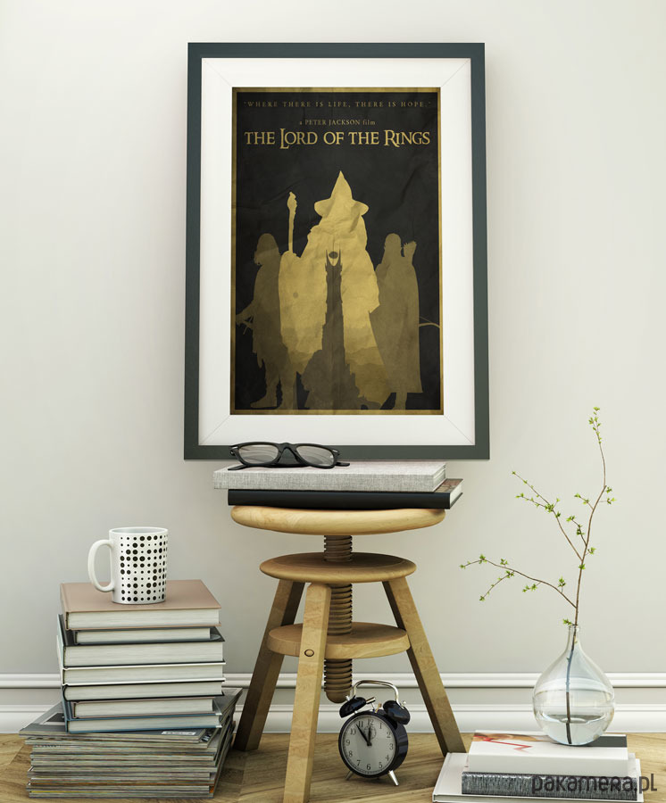 Plakat z autorską grafiką inspirowaną trylogią filmową "Władca pierścieni" (The Lord of the Rings), reż. Peter Jackson.