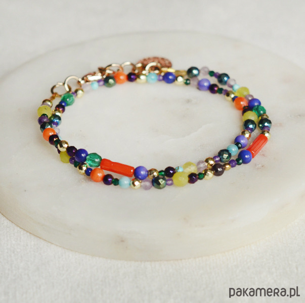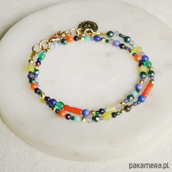 Podwójna bransoletka Tiffany z multikolorowych kamieni naturalnych.