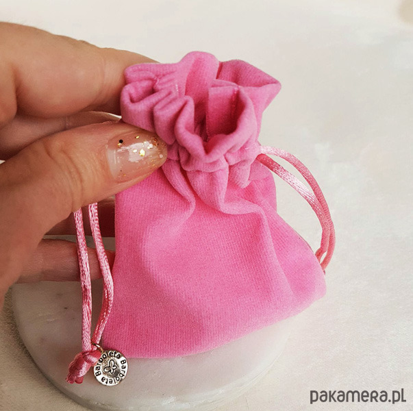 Biżuteria zapakowana w aksamitną uroczą sakiewkę.