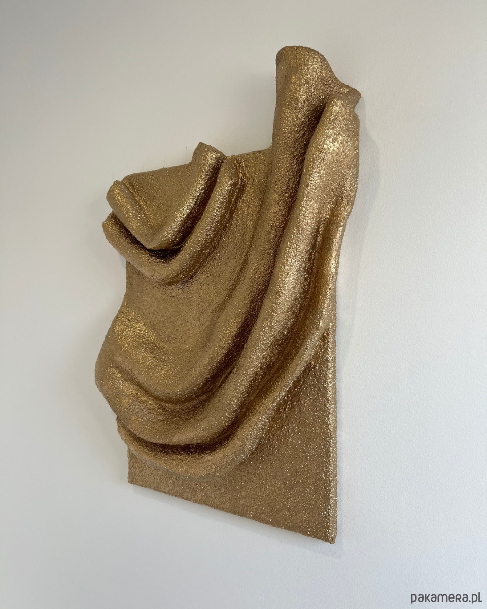 Statyczna eksplozja form, tekstur i głębi. Nasze unikatowe, ręcznie wykonane rzeźby ścienne zmieniają się w zależności od punktu widzenia obserwatora. Niektóre detale wydają się być ukryte, a po chwili stają się wyraźne i dominujące. Autorska mieszanka gipsu została wykorzystana w sposób, który doskonale imituje charakterystyczną strukturę tkaniny boucle. Delikatne “pętelki” i nierówności sprawiają, że rzeźba nabiera życia, tworząc efekt głębi i trójwymiarowości, jest pełna dynamizmu, choć w rzeczywistości pozostaje nieruchoma. Kolorystyka jest stonowana i naturalna, pasująca idealnie do estetyki wabi-sabi.