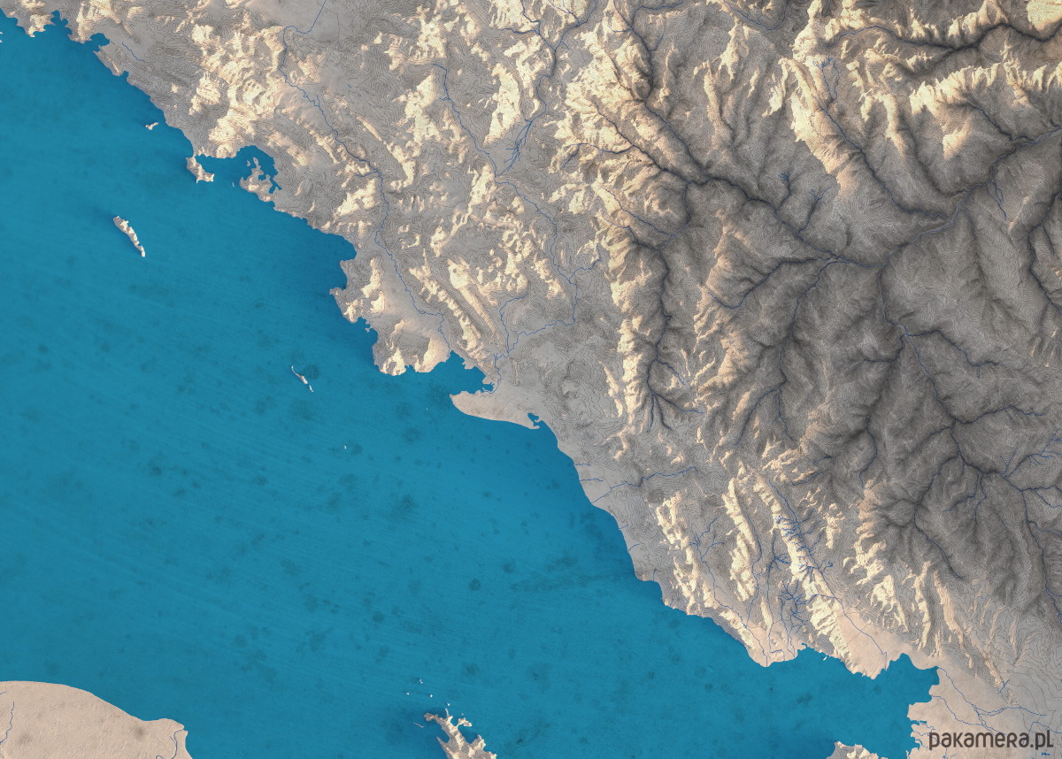 Mapa reliefowa wykonana na podstawie numerycznych modeli terenu oraz danych geograficznych.