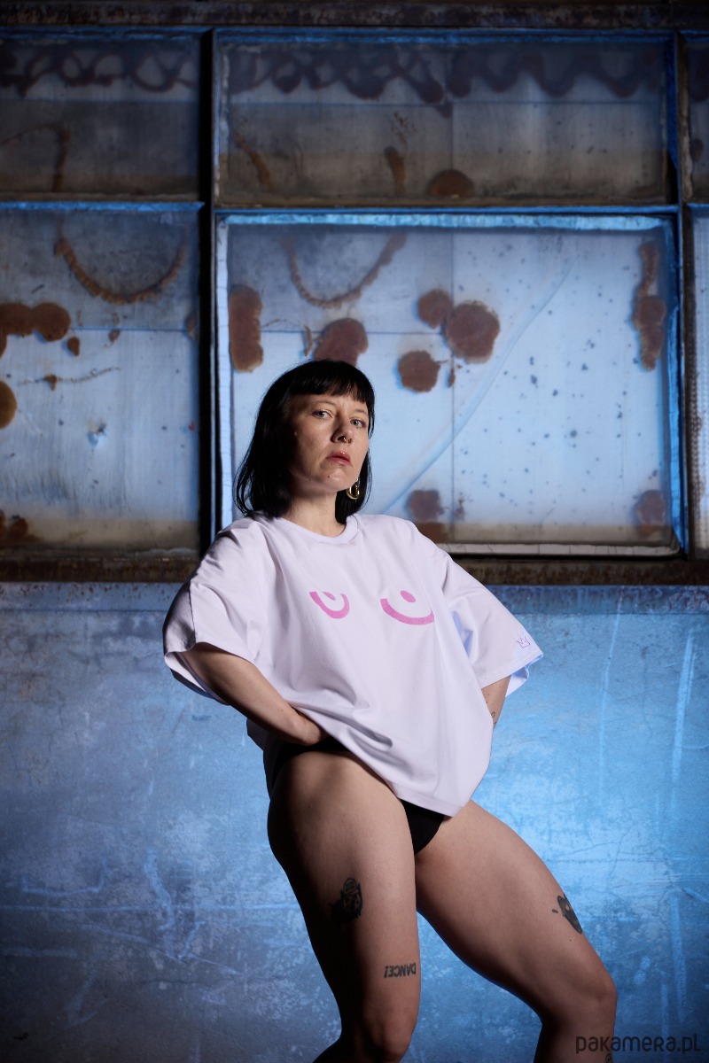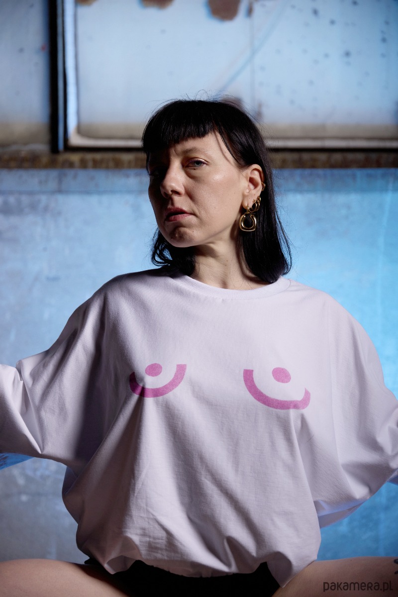 Prosty pudełkowy t-shirt w mocno oversizowej i wydłużonej formie.