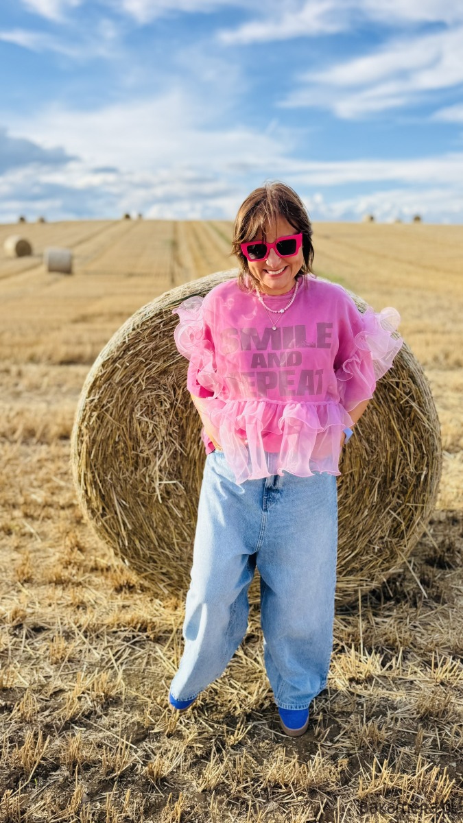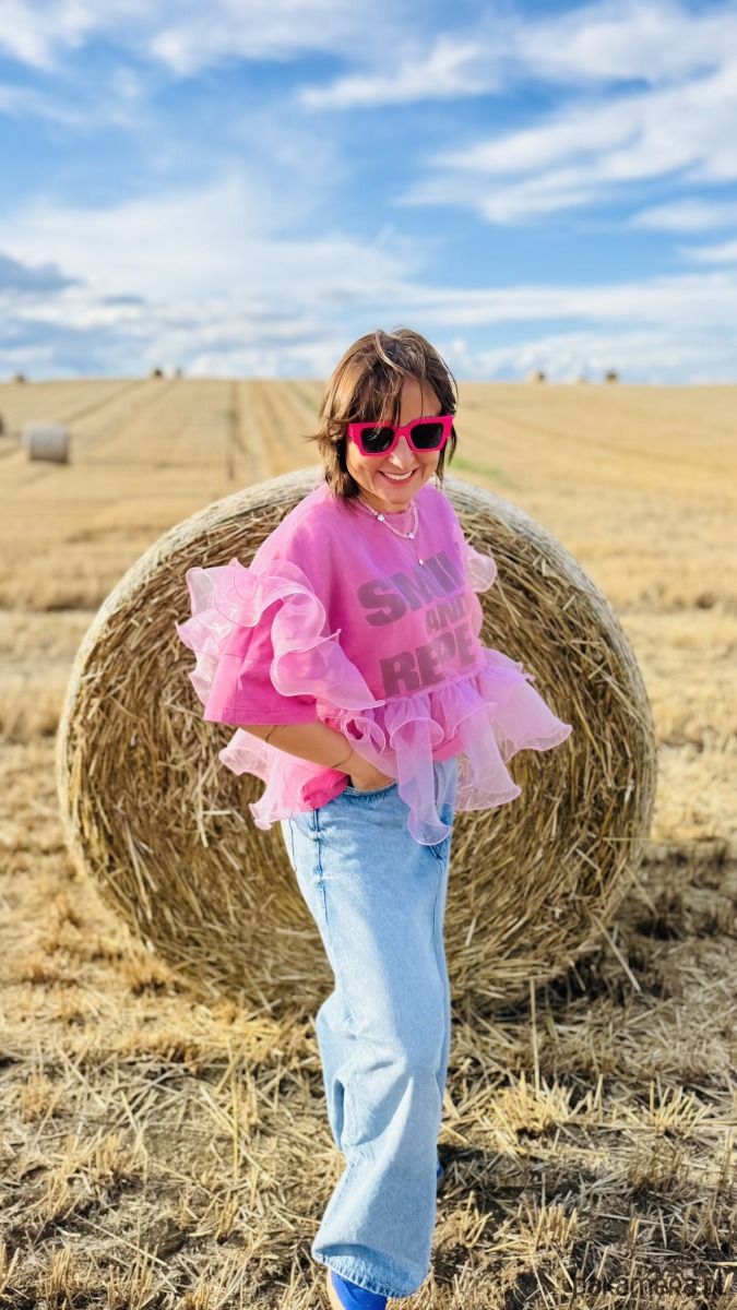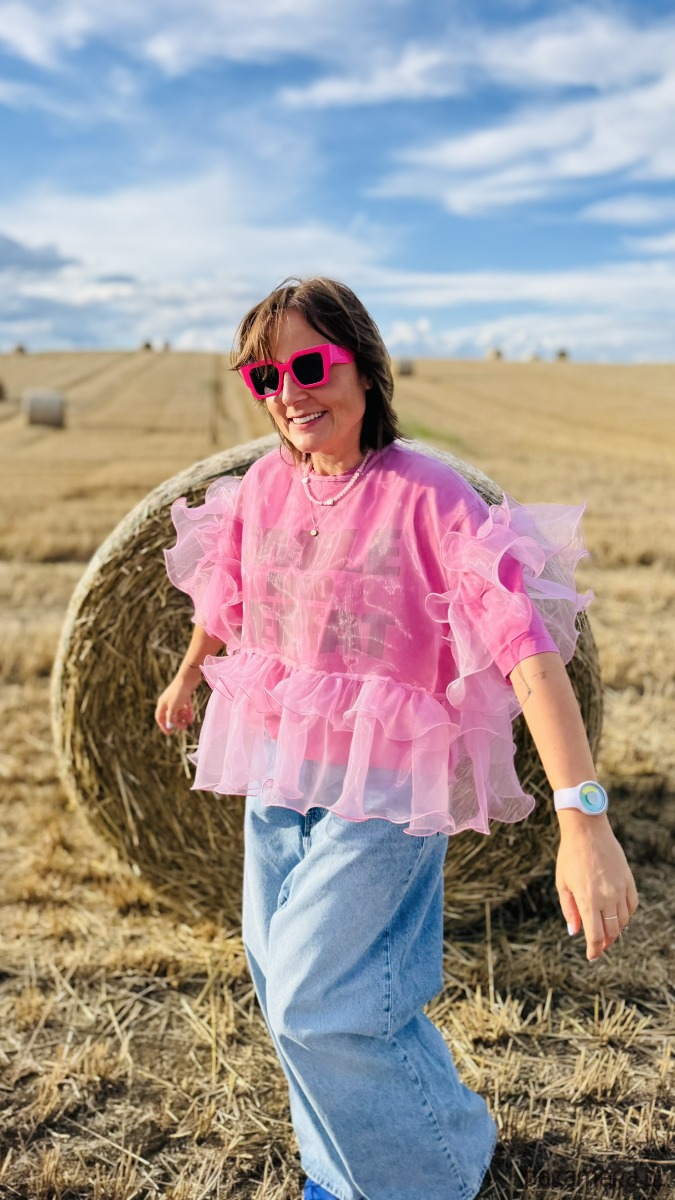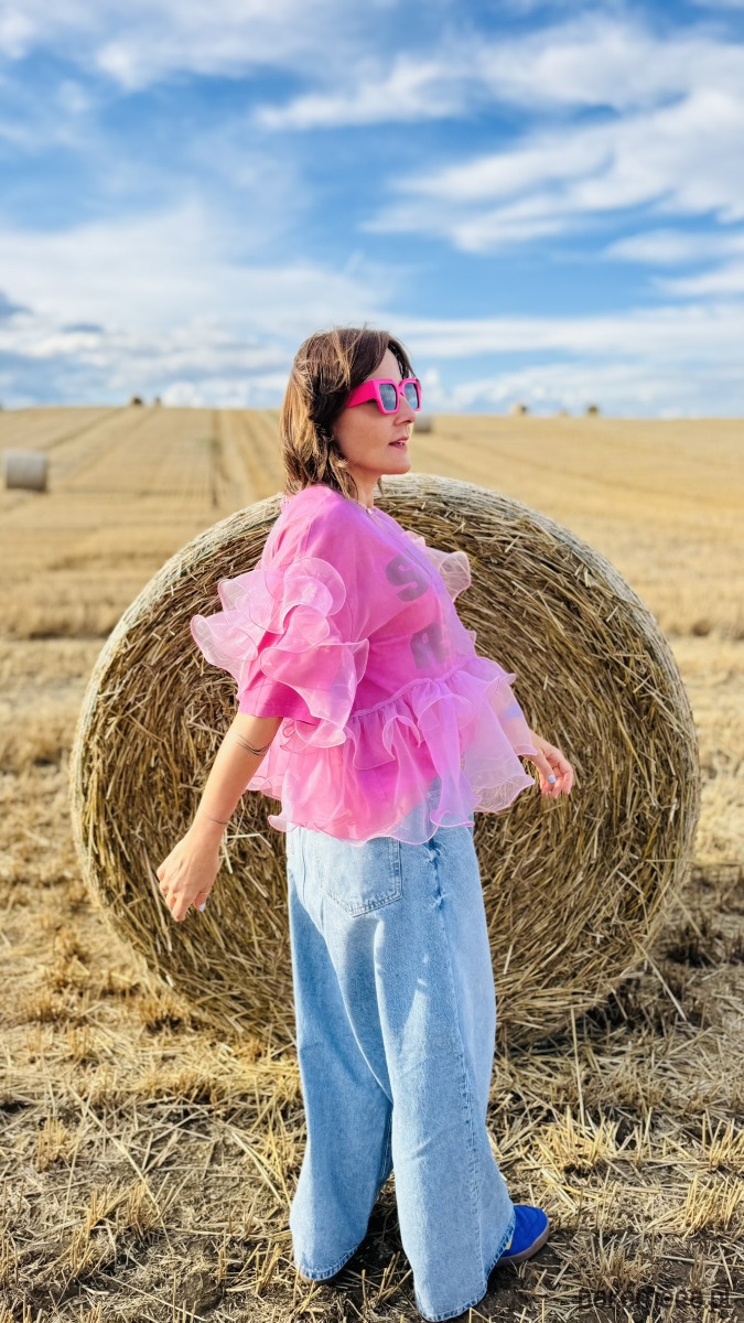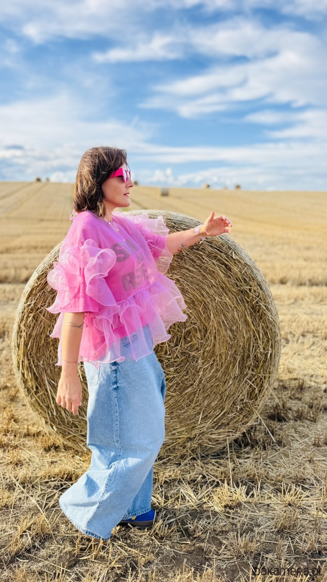 Delikatna, a jednocześnie wyrazista – ta różowa bluzka z tiulu to idealny sposób, by tchnąć kolor i lekkość w każdą stylizację. Uszyta z transparentnego tiulu i wykończona romantycznymi falbankami, stanie się efektownym dodatkiem, który ożywi nawet najprostszy zestaw.