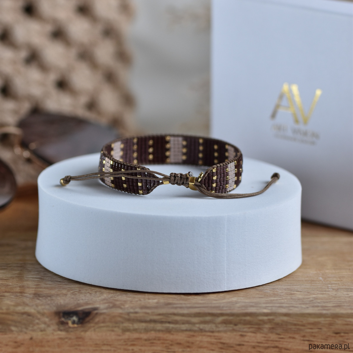Piękna bransoletka w modnych kolorach łączących beż z różnymi odcieniami brązu.