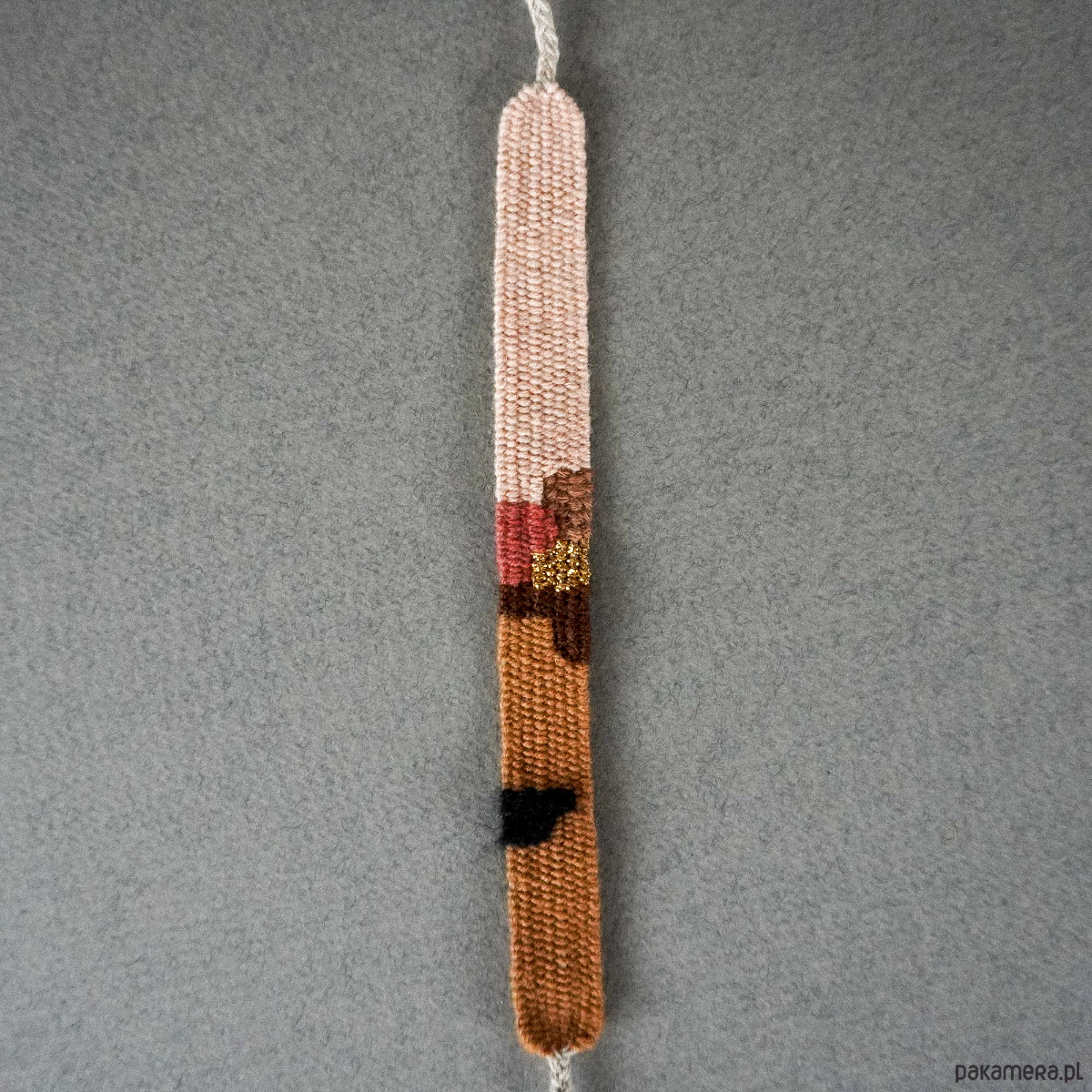 Piękna bransoletka ręcznie wykonana na krośnie w ciepłych, jesiennych odcieniach 🍁. Szerokość około 1,5 cm , długość części tkanej około 14,15 cm plus sznureczki do samodzielnego wiązania. Polecam serdecznie ♡. Bransoletka jest estetycznie zapakowana, gotowa do wręczenia na prezent 🩷