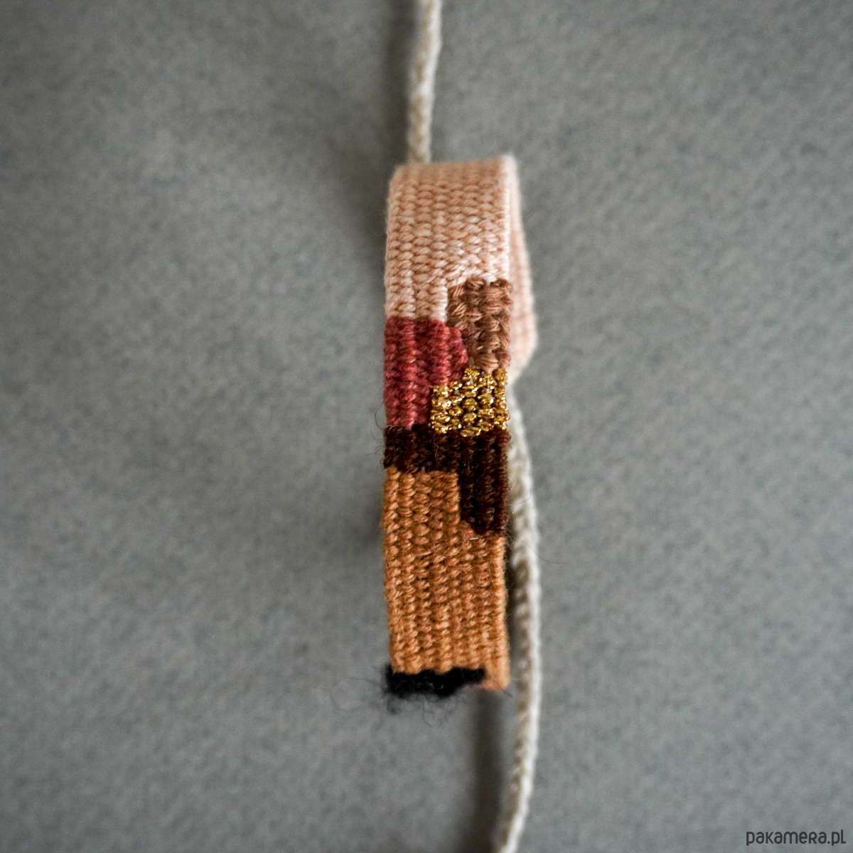 Bransoletka ręcznie wykonana na krośnie z nici - jesienny liść