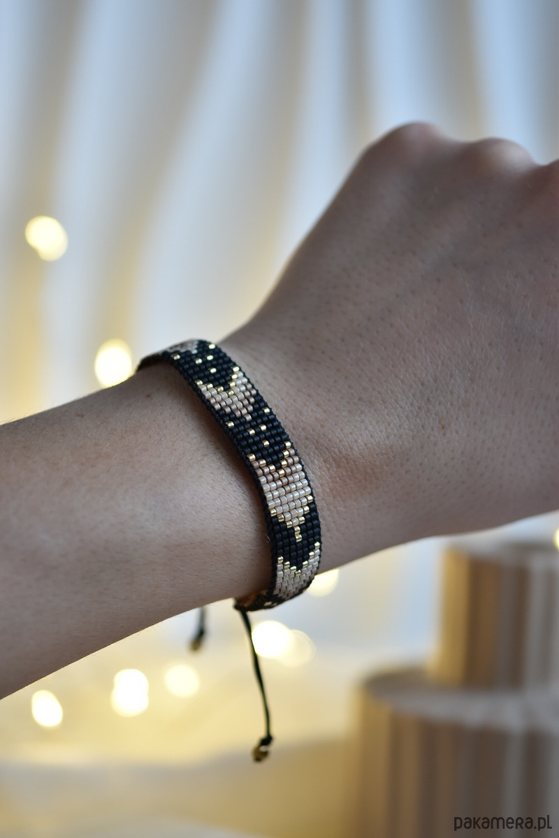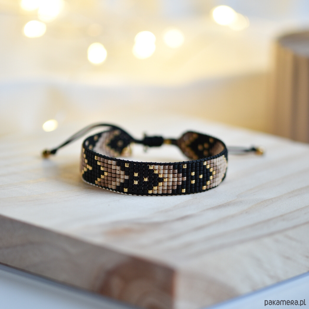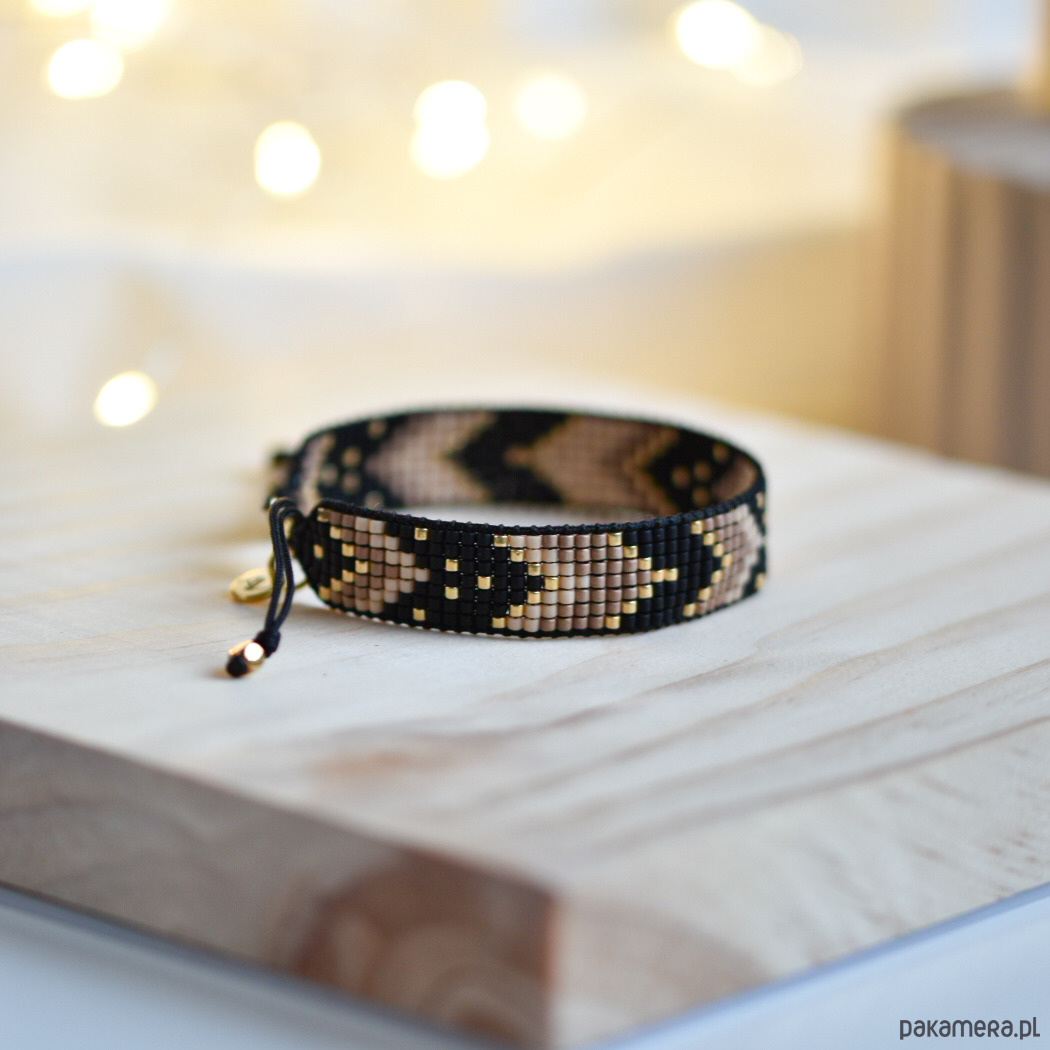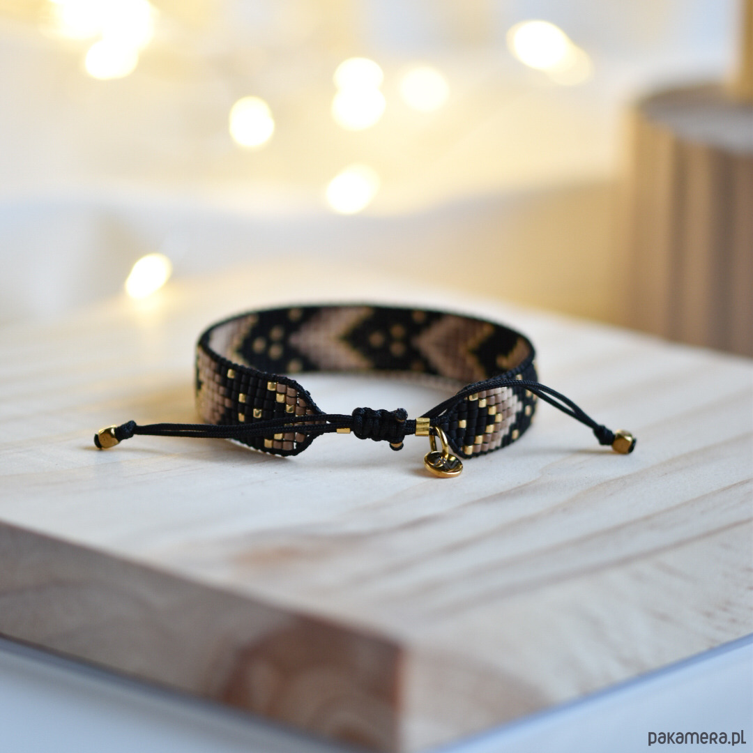 Tkana bransoletka - harmonia czerni, beżu i złota