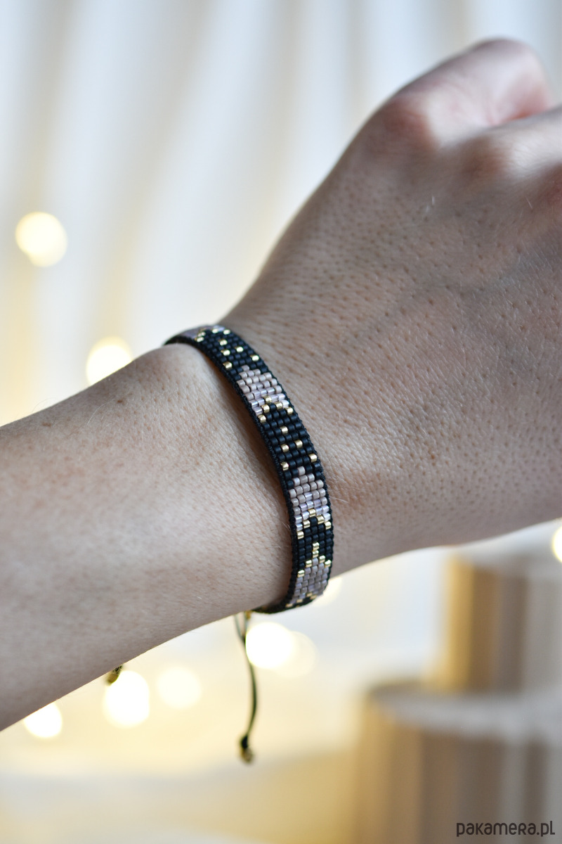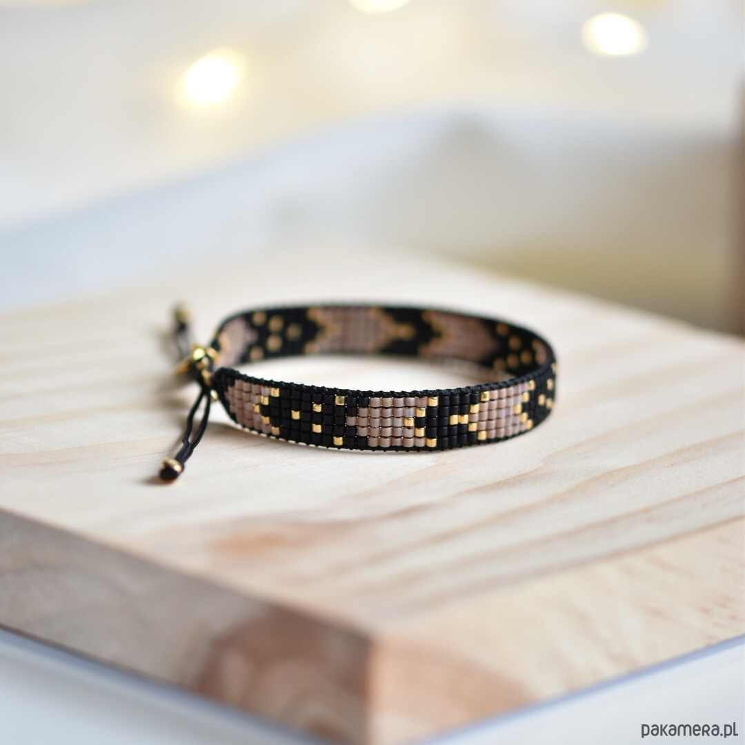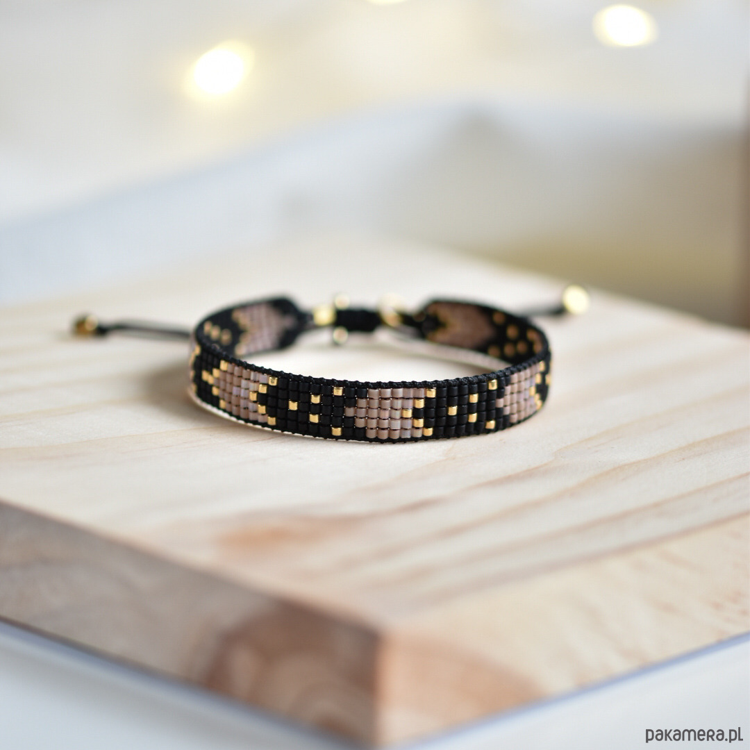 Tkana bransoletka - harmonia czerni, beżu i złota - wersja mini