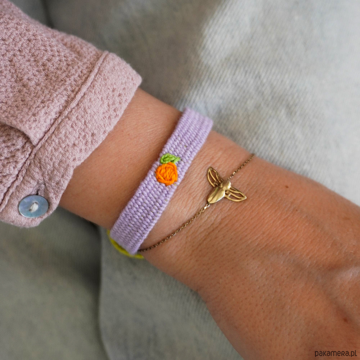Widziałaś/widziałeś kiedykolwiek taką bransoletkę lub nawet choćby podobną? Jestem pewna, że nie :) Jedyna taka i do tego prześliczna ręcznie tkana bransoletka z haftowaną pomarańczą. Idealna do wiosennych i letnich stylizacji.