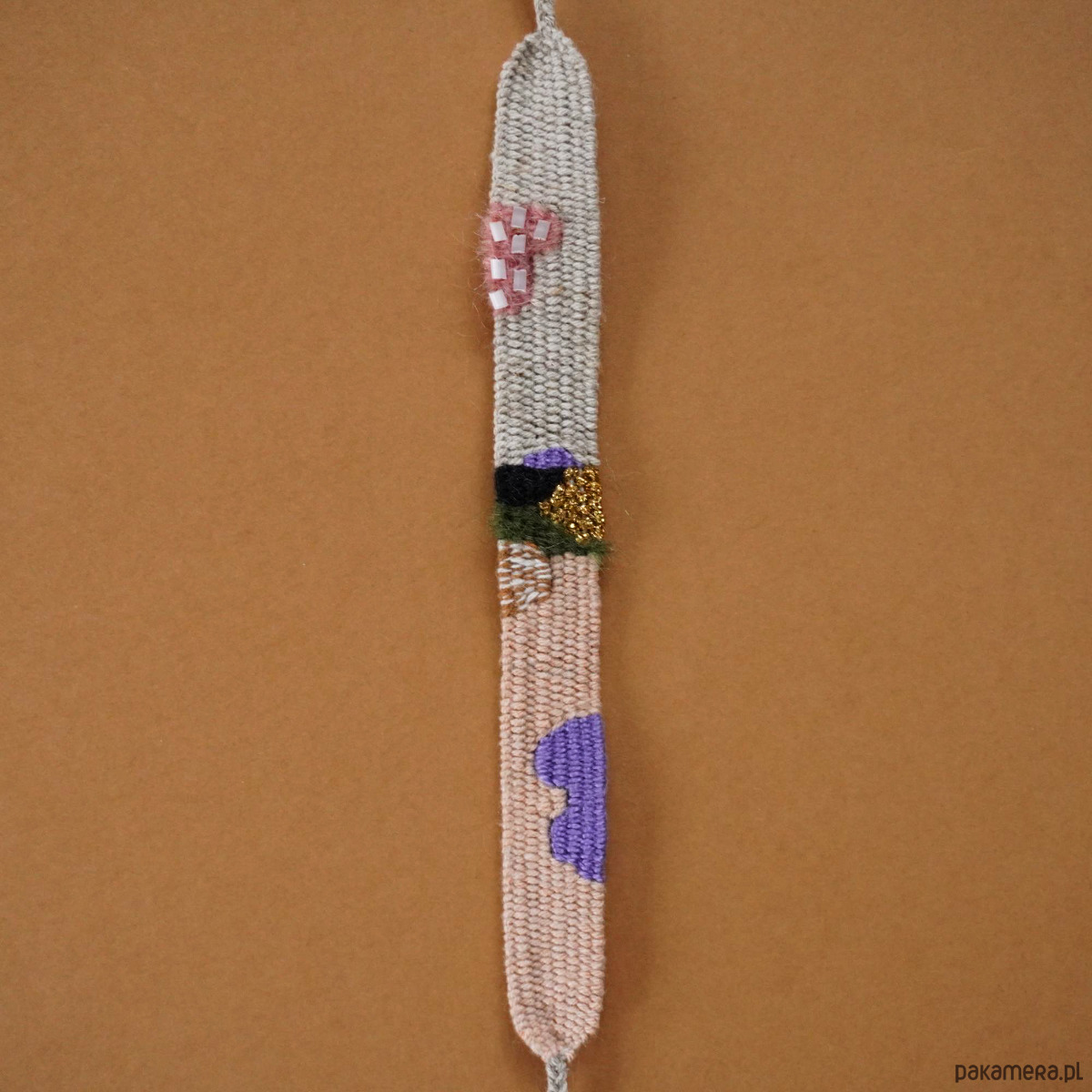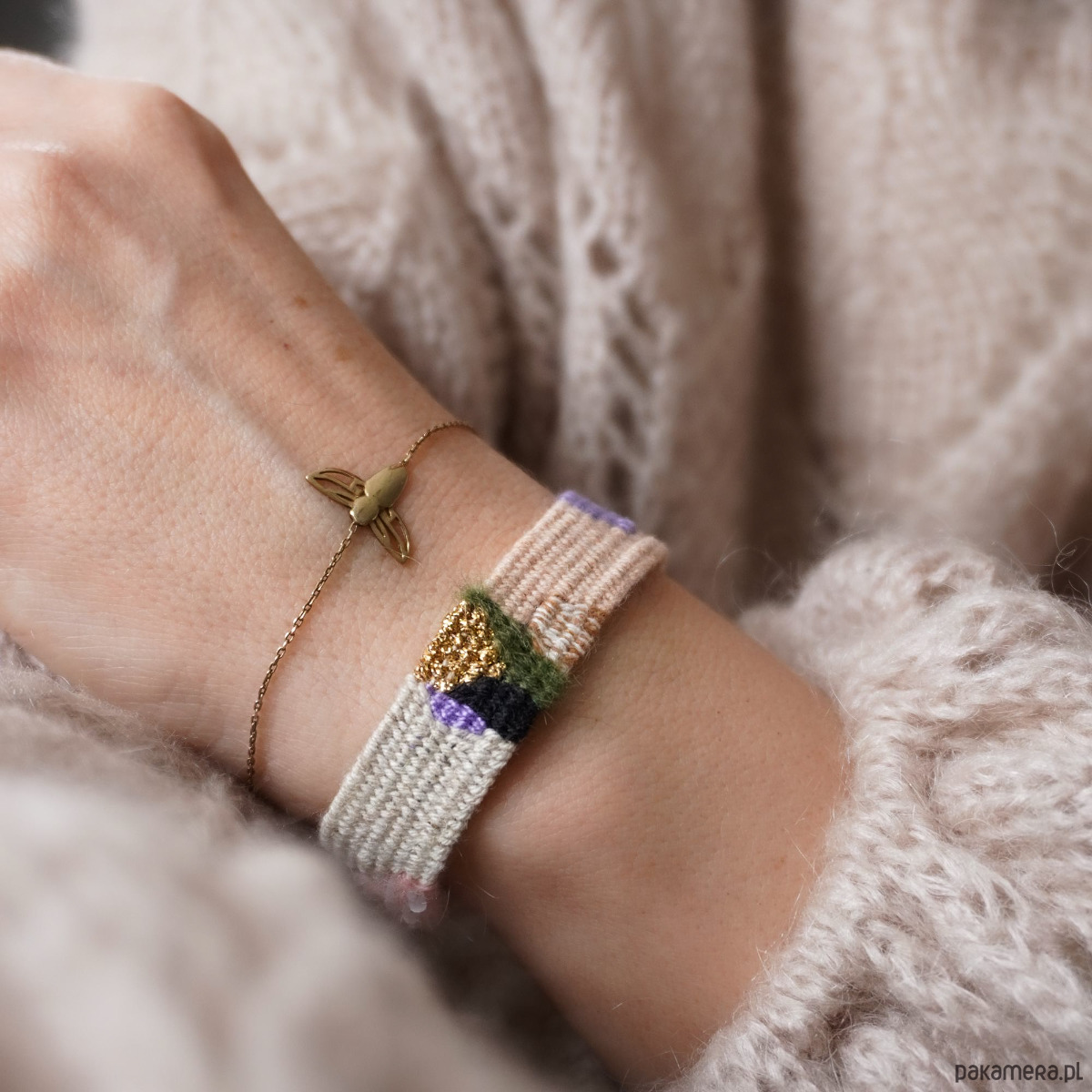 Bardzo ważne jest aby bransoletka leżała na gładkiej powierzchni wyprostowana, żeby część tkana się nie pogniotła. Oczywiście zabezpieczamy bransoletkę przed słońcem, kurzem, chemią.