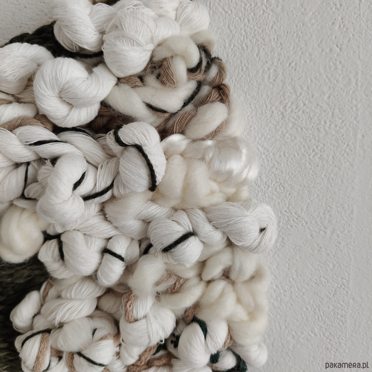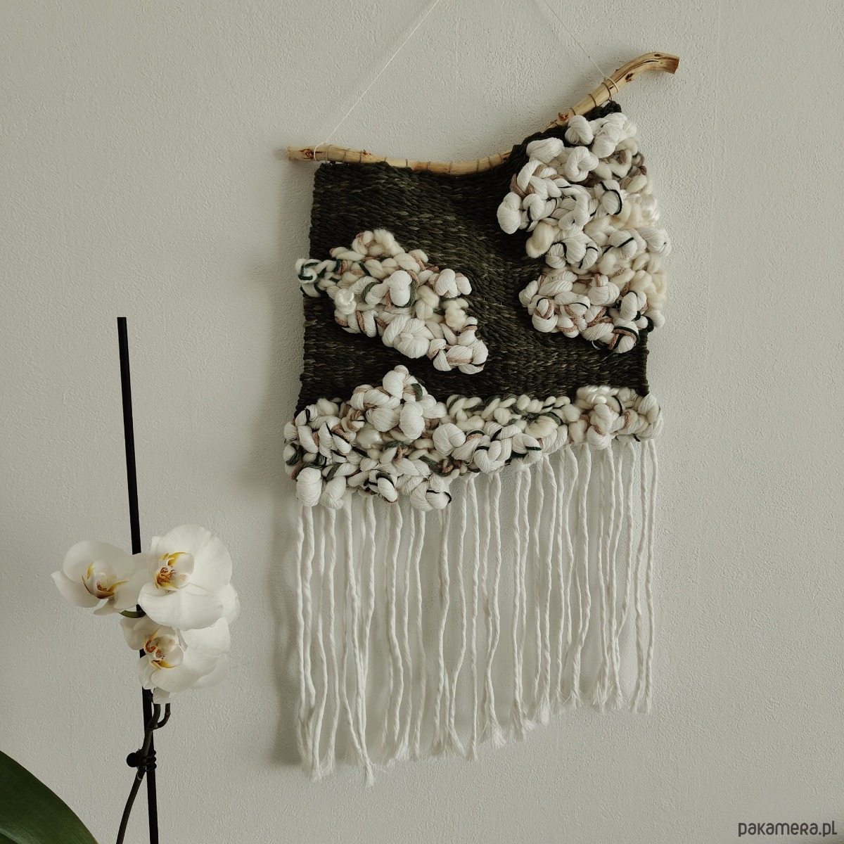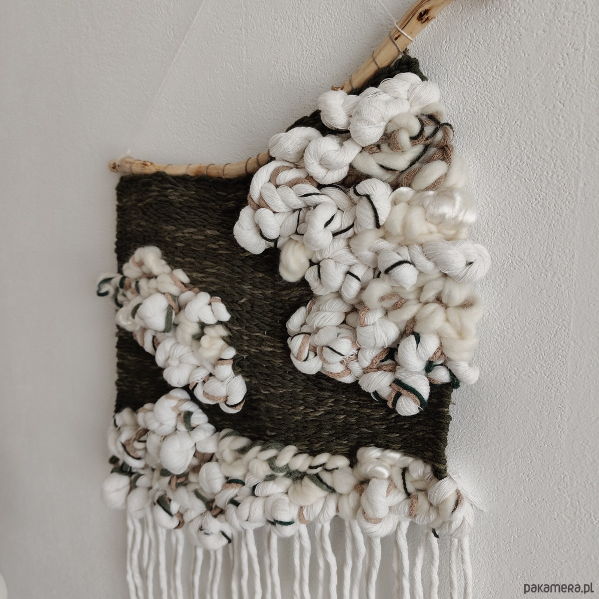 MATERIAŁ: wełna, wiskoza, sznurek bawełniany, sznurek lniany, naturalne drewno z dekoracyjnej wierzby mandżurskiej