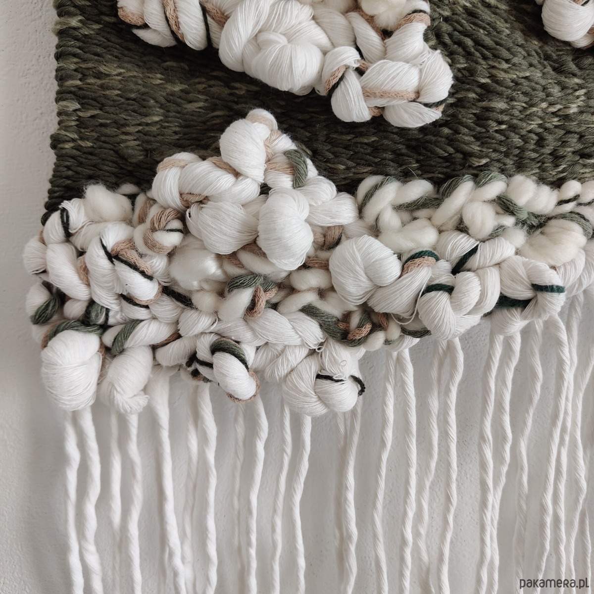 Tkana dekoracja w wiosennych odcieniach zieleni będzie świetnie pasowała do nowoczesnego wnętrza, jako miękki, efektowny detal dekoracyjny. Jest gotowa do zawieszenia. Pakowana dekoracyjnie, może być gotowym prezentem dla kogoś bliskiego lub do domu.
