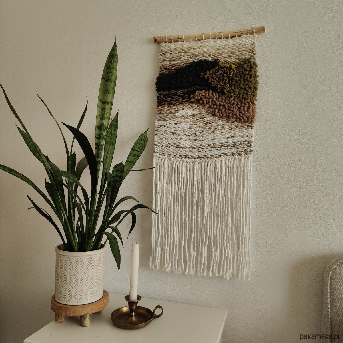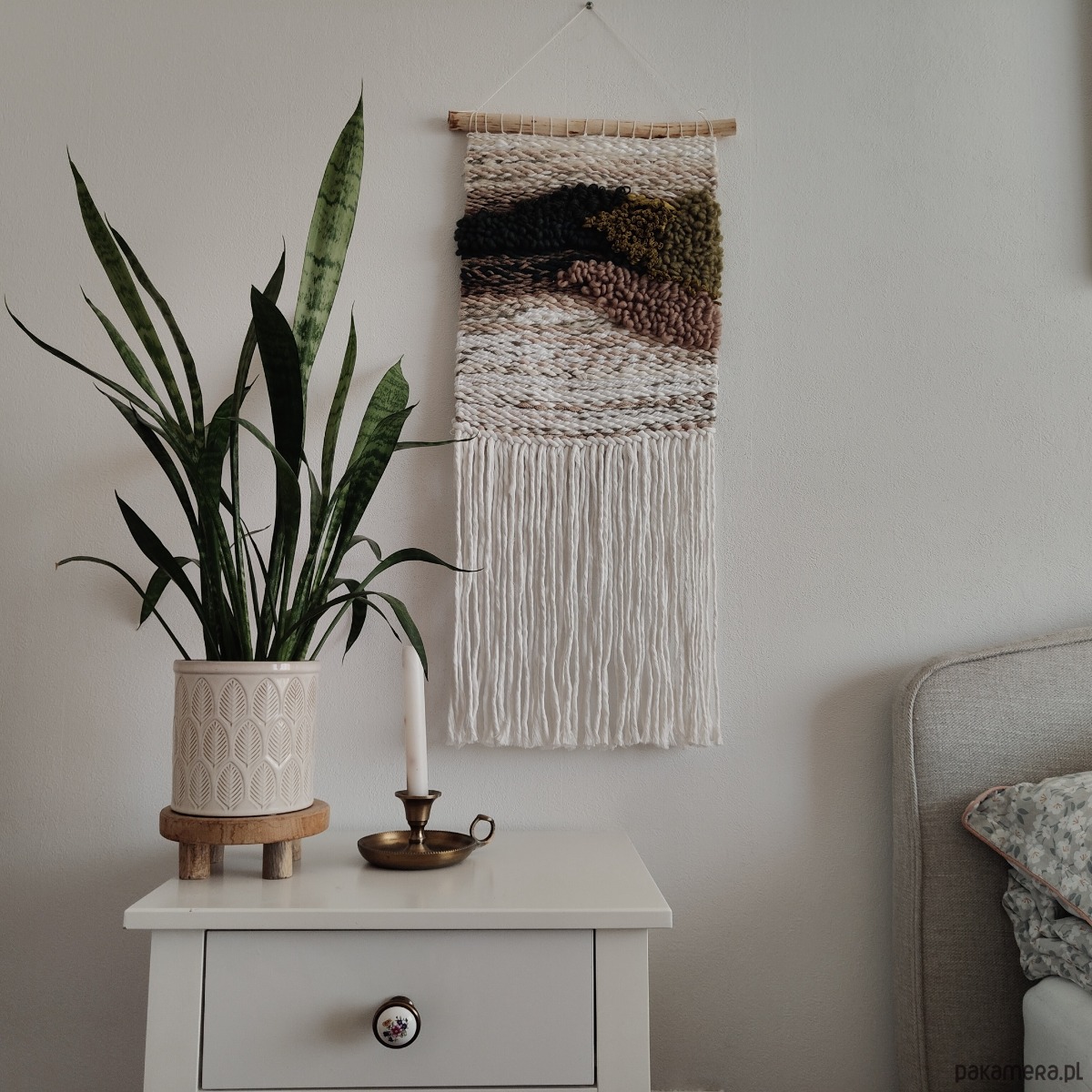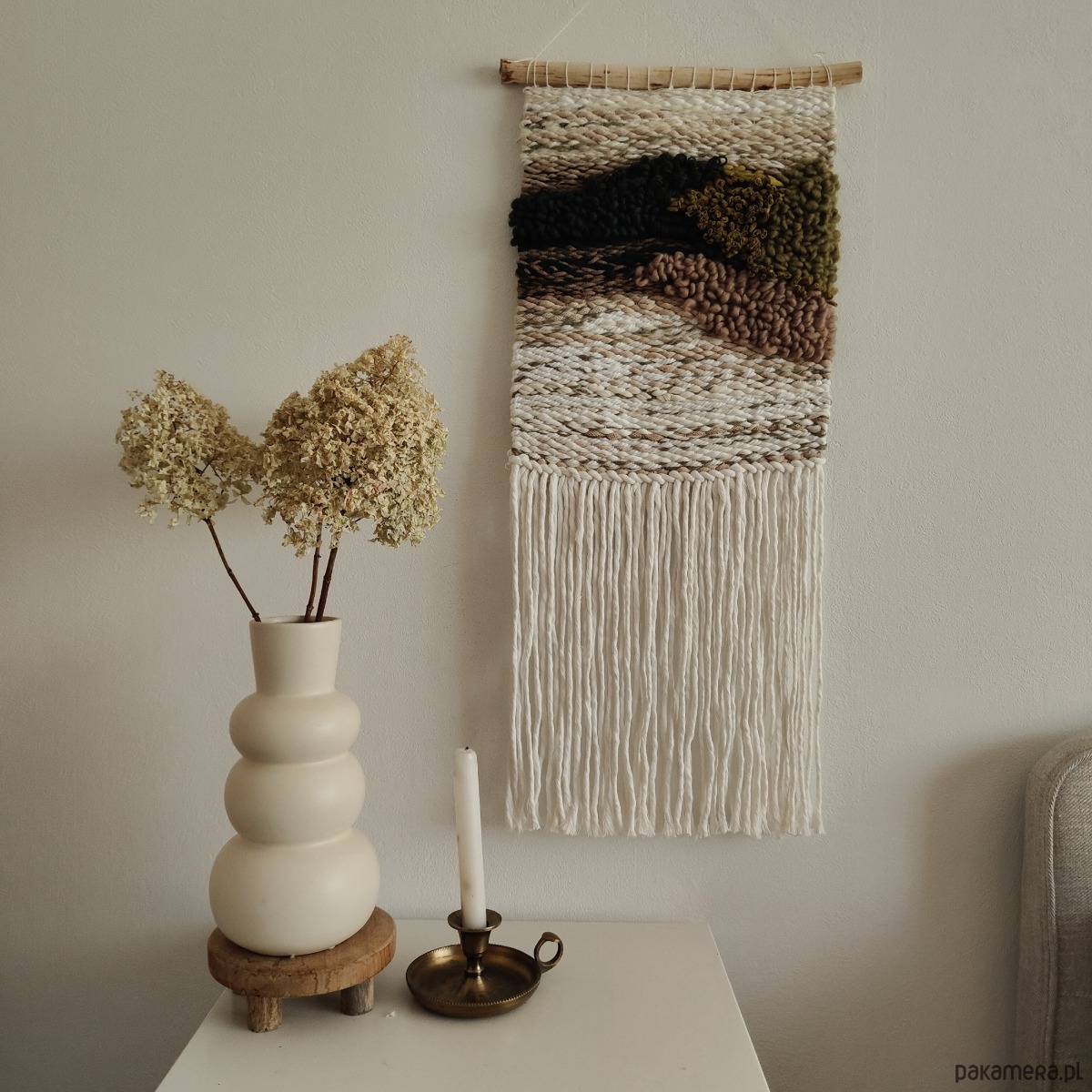 Ta tkana dekoracja ścienna doda przytulności każdemu wnętrzu, będzie doskonałym prezentem dla kogoś, kto ceni wyjątkowe ręcznie wykonane przedmioty z naturalnych materiałów.