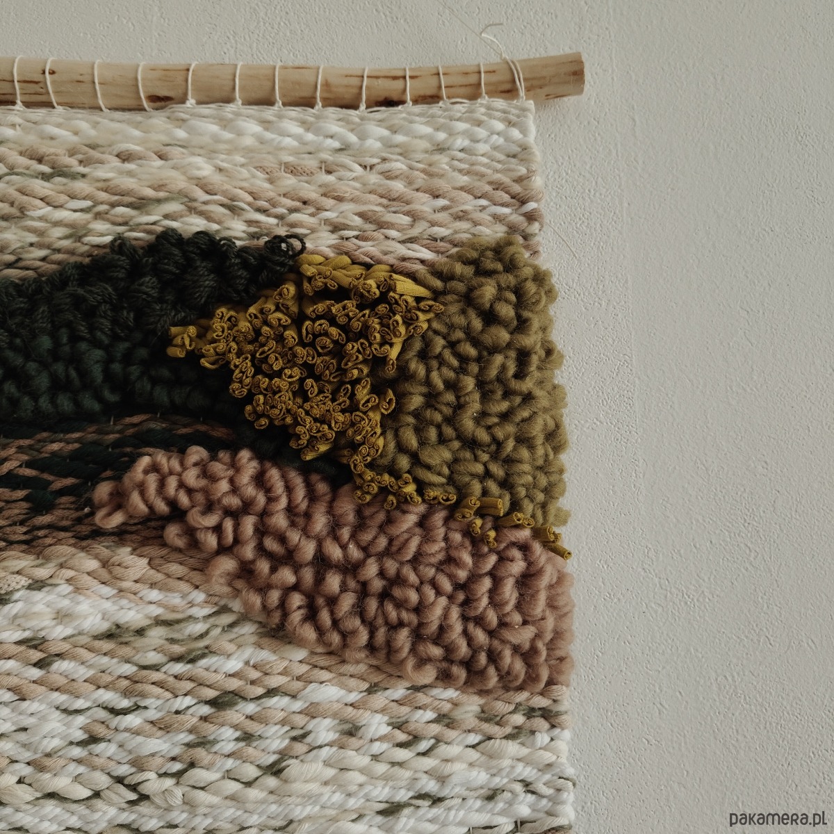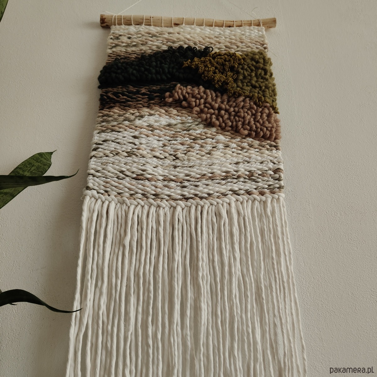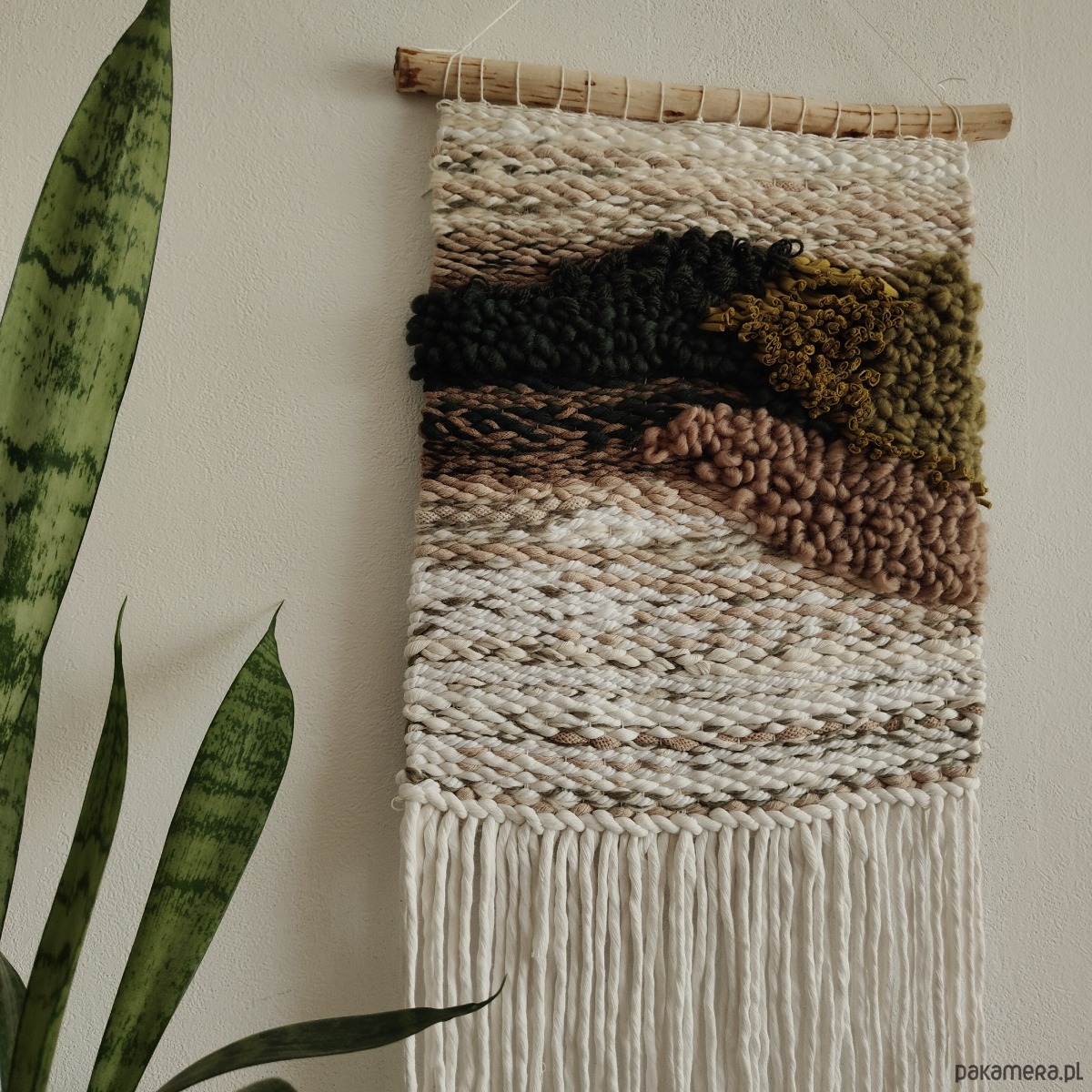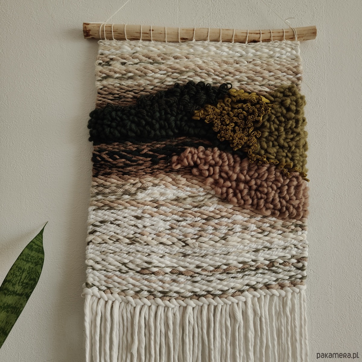Ta tkana dekoracja ścienna doda przytulności każdemu wnętrzu, będzie doskonałym prezentem dla kogoś, kto ceni wyjątkowe ręcznie wykonane przedmioty z naturalnych materiałów.