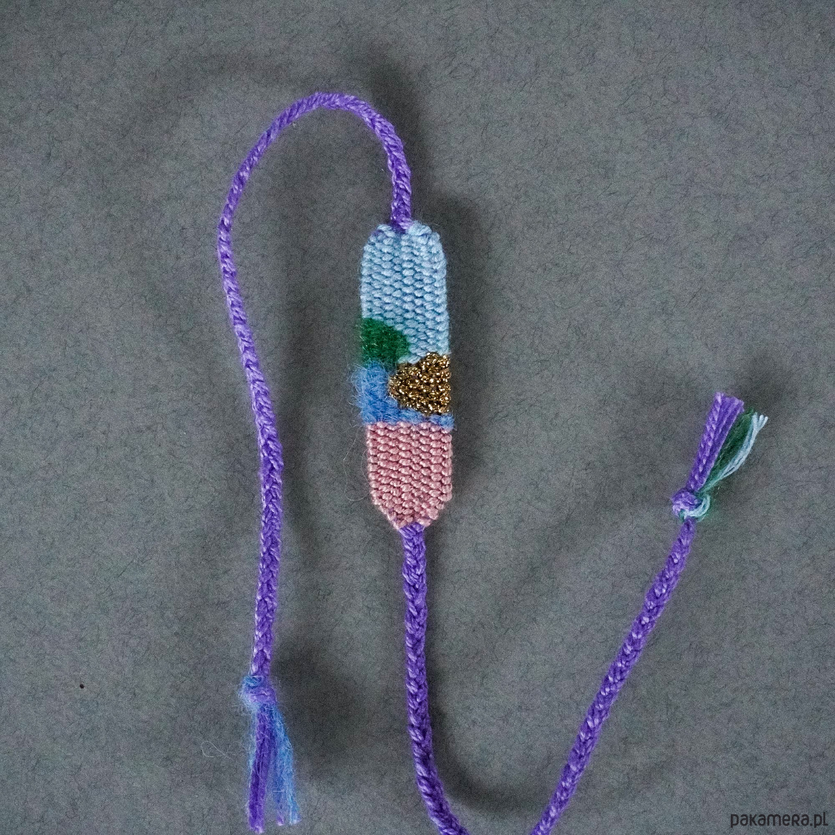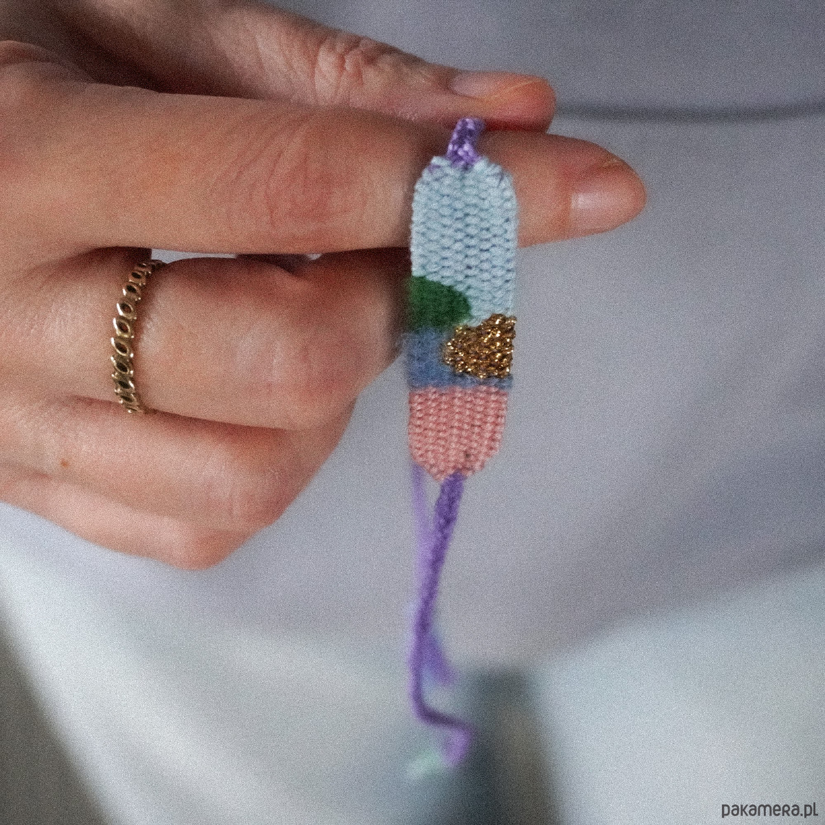 Tkana, mini bransoletka na sznureczku - pastelowy widoczek