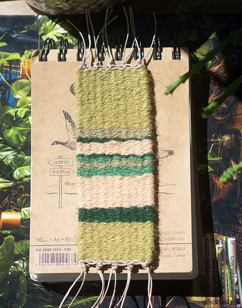 Ręcznie utkana zakładka do książki będzie idealnym prezentem dla przyjaciółki, siostry, mamy lub po prostu dla miłośnika książek. Zakładka została utkana ręcznie na drewnianej ramie. Jest w 100% naturalna, gdyż została wykonana z wełny i nici lnianych. Zielone kolory uzupełniają się i wprowadzają wiosenną energię. Idealnie nadaje się do książek, które czytasz przed snem i trzymasz na stoliku nocnym.✨