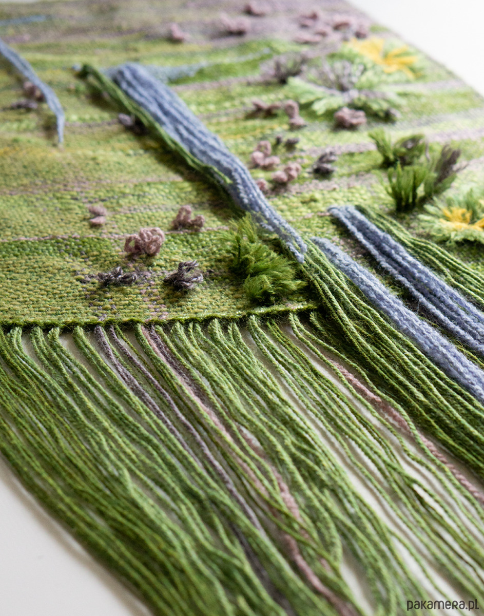 Łąka” to unikatowa tkanina artystyczna inspirowana wiosennym krajobrazem.