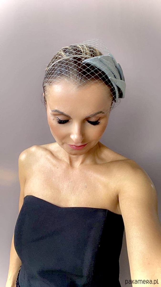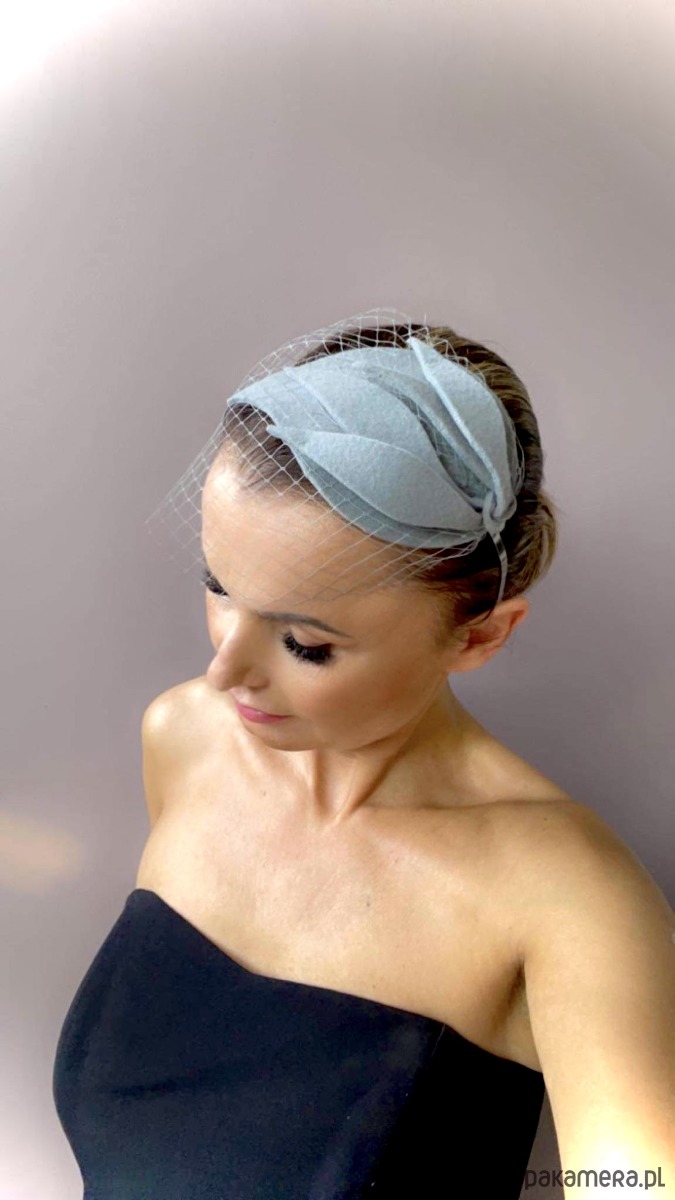 Uroczy toczek /fascynator /ozdoba na głowę ciemno szarym /stalowym kolorze .Piękny i elegancki dodatek do kreacji , doskonały na różne okazje. Wykonany profesjonalnie , ze szczególną starannością i dbałością o każdy szczegół , z miękkiego filcu oraz zamocowany na złotej ,czarnej lub srebrnej opasce - do wyboru .Fascynator można nosić na różne sposoby , a to dzięki mocowaniu do opaski , które jest wykonane w sposób , który umożliwia przesuwanie ozdoby do różnych pozycji na głowie , w zależności od potrzeby czy upodobania.