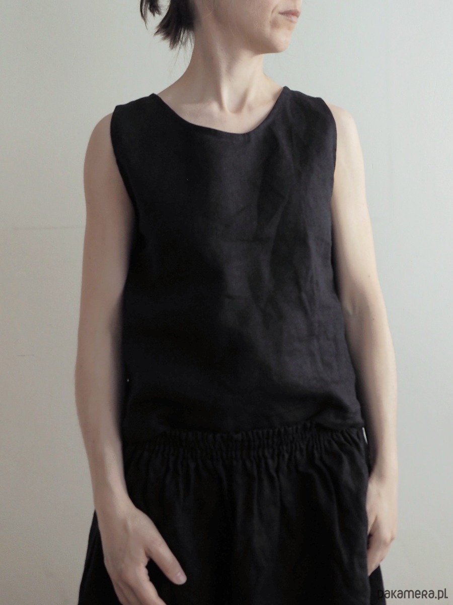 Lniany top bez rękawków, 100% len. Luźny, naturalny, cudownie wygodny, chlodzący, miły dla skóry i oka. Zaprojektowany i uszyty w Polsce przez madebyjokpa w duchu slow fashion.
