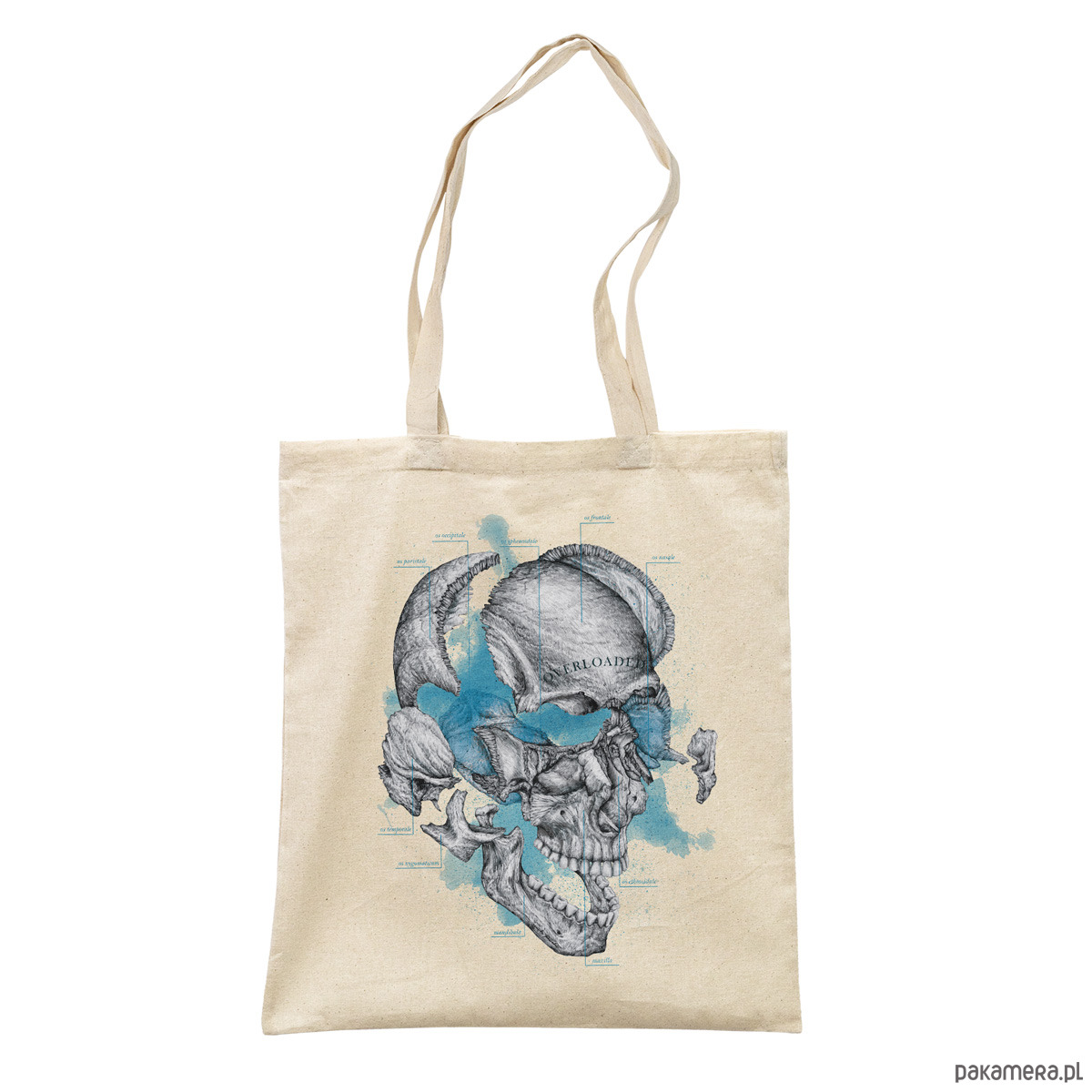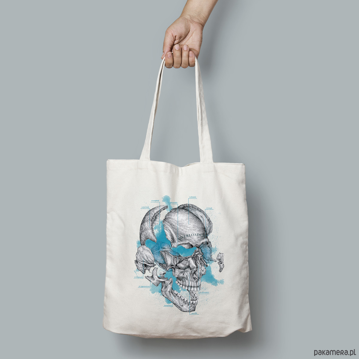 Wytrzymała torba w kolorze ecru z anatomicznie poprawną ilustracją czaszki i łacińskimi podpisami struktur. Wykonana z grubej bawełny (220 g), idealna do codziennego użytku: na uczelnię, dyżur, do pracy i miasta. Ilustracja powstała na bazie ręcznego rysunku ilustratorki medycznej. Produkt w 100% polski – projekt, druk i szycie pod Krakowem. Perfect dla studentów, lekarzy i pasjonatów anatomii.