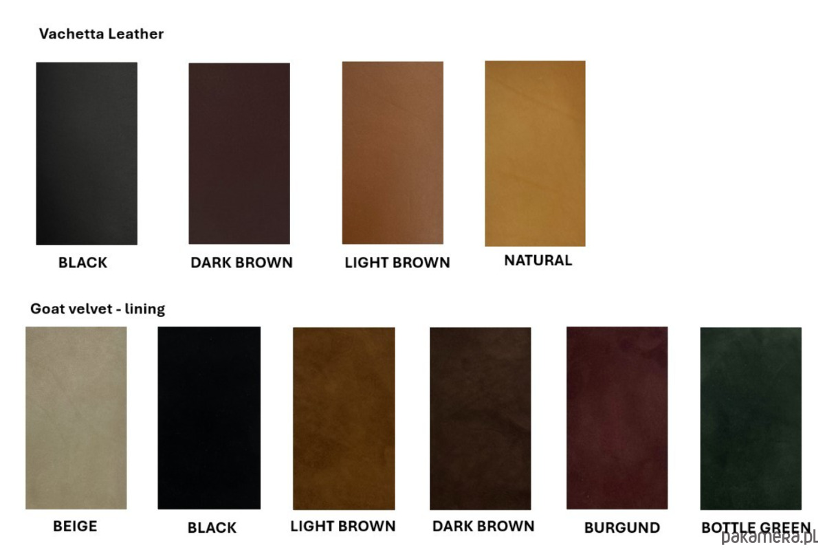Materiał: Skóra naturalna, roślinnie garbowana Vachetta