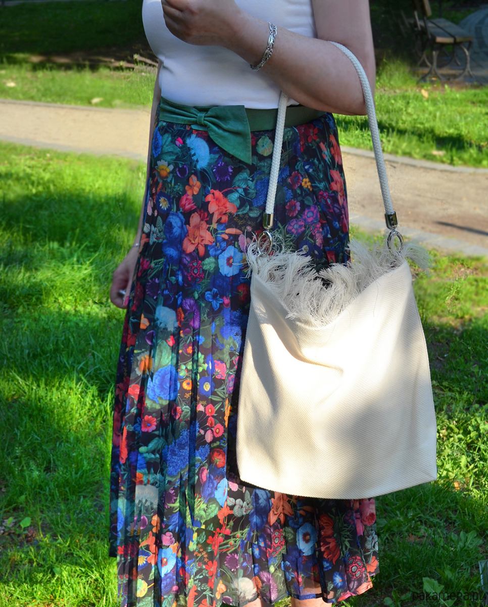 Torba w stylu boho, wykonana z naturalnego kremowego płótna żaglowego.