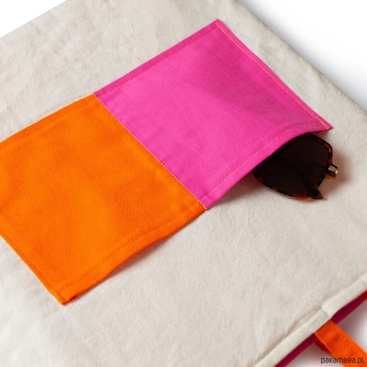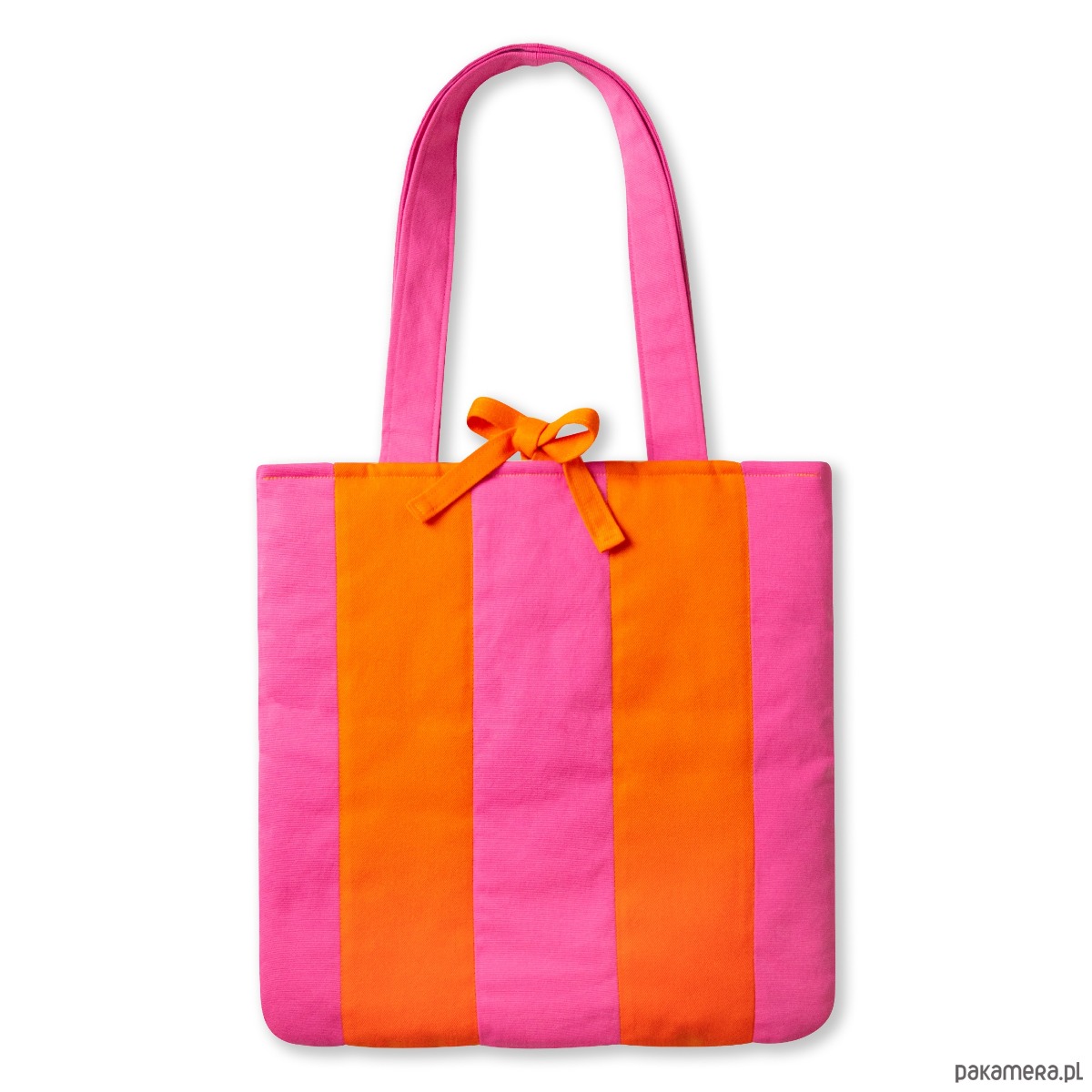 Torba pikowana w energetyczne różowo-pomarańczowe pasy.