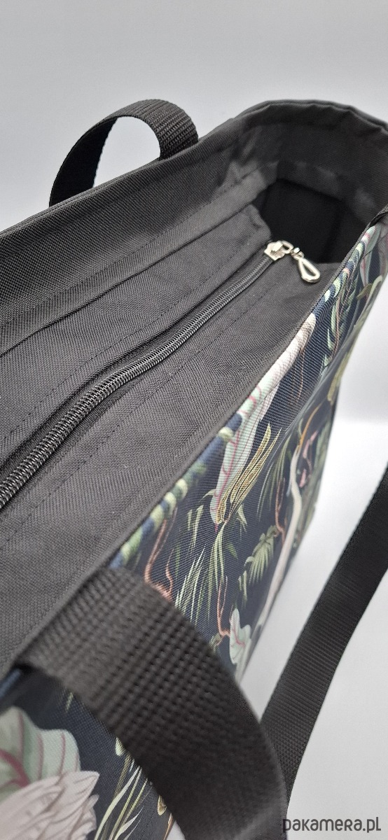 Ta torba na zamek posiada pojemne wnętrze – pomieści wszystko, czego potrzebujesz: telefon, portfel, dokumenty w rozmiarze A4, a nawet mały laptop czy tablet.