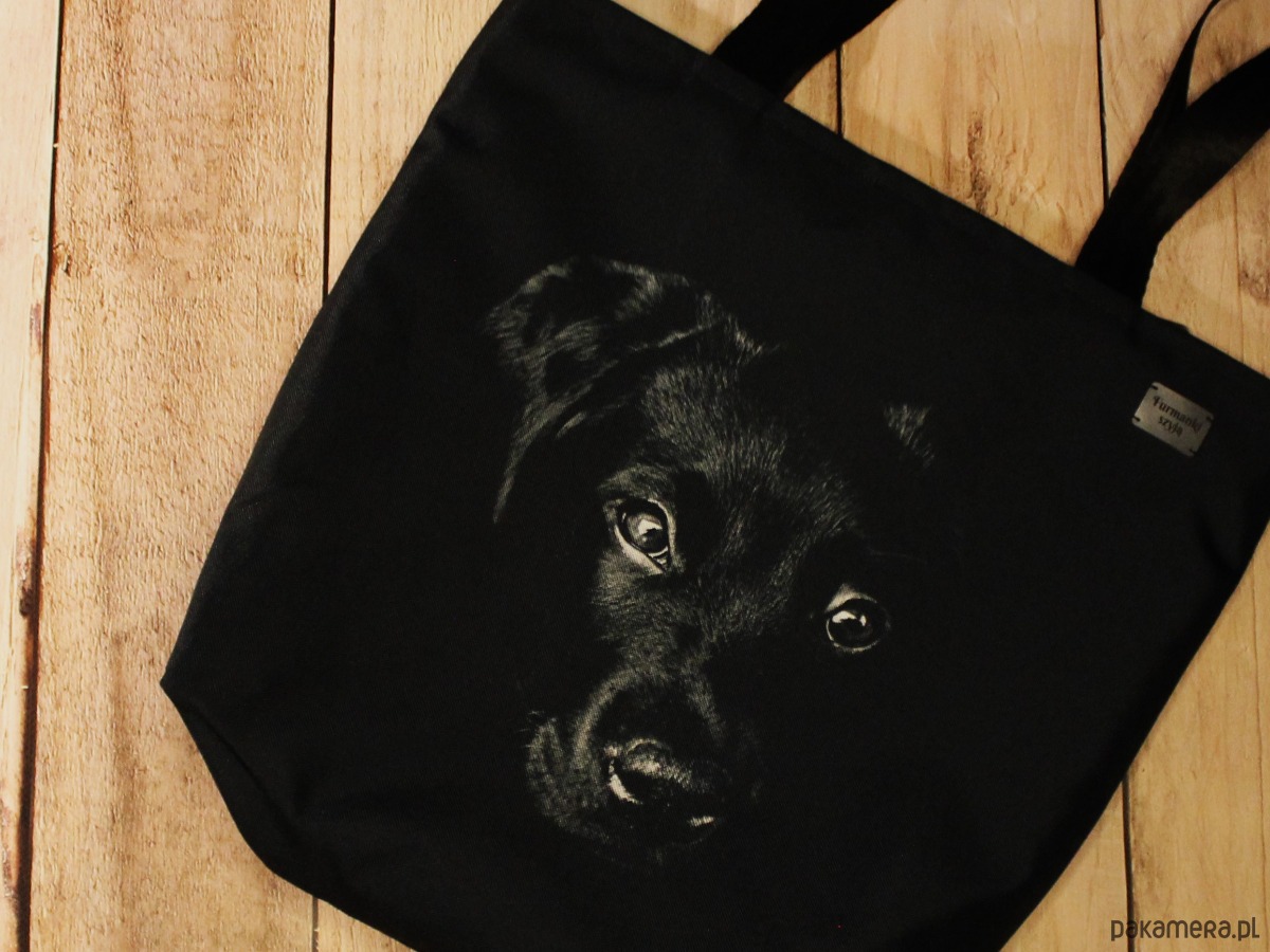 Torba shopperka uszyta z poliestru wodoodpornego z kieszonką w środku.