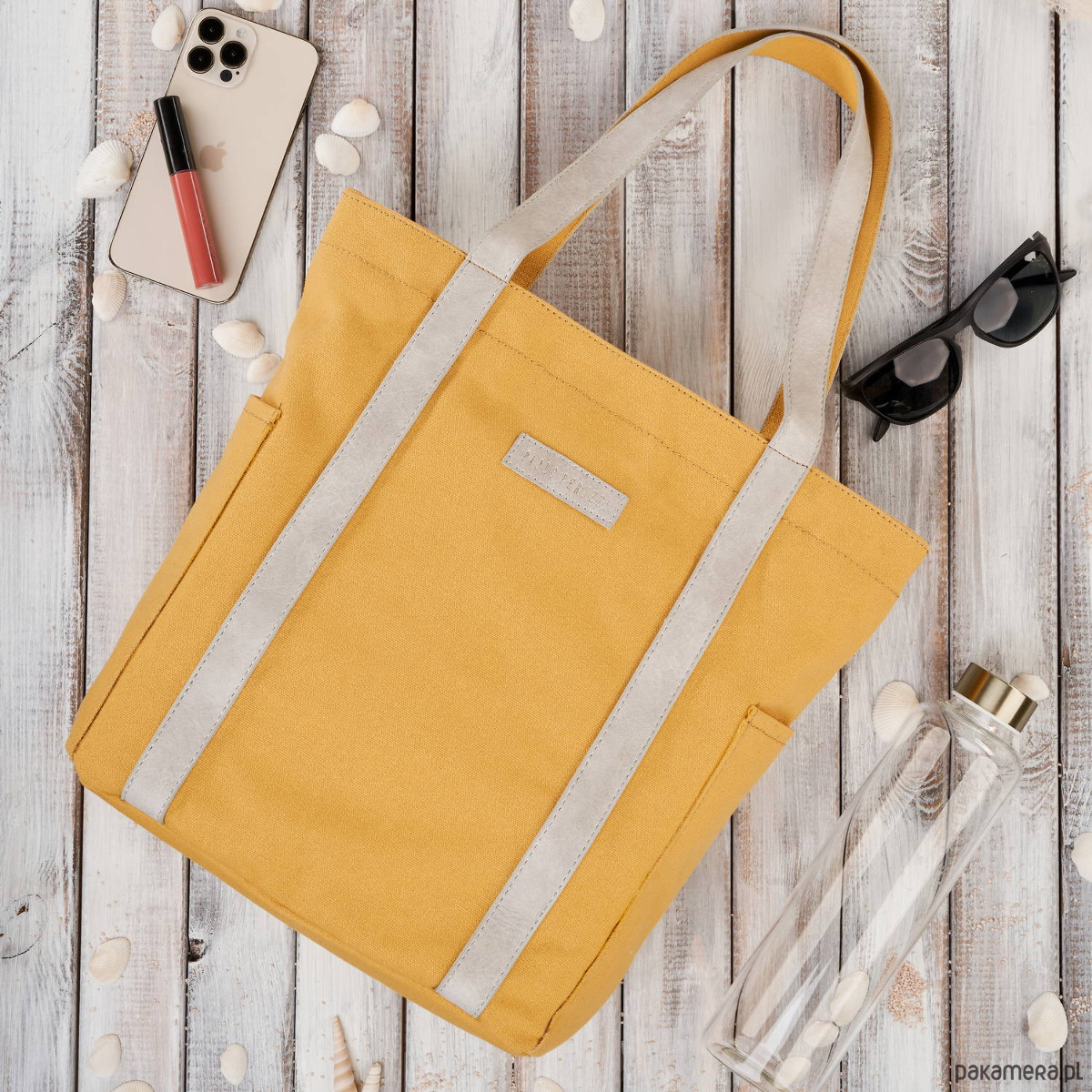 Torba damska na ramię shopper duża wegańska materiałowa pojemna żółta E-17-YL