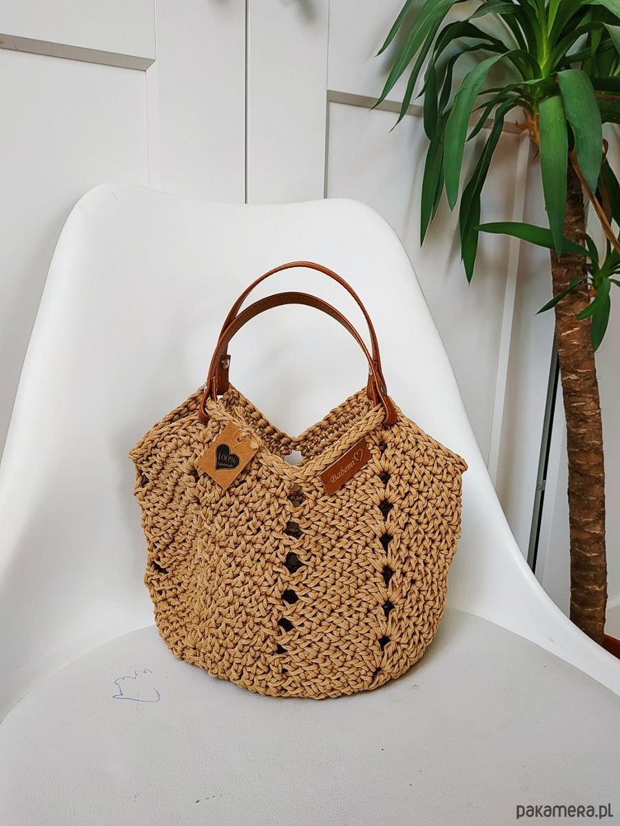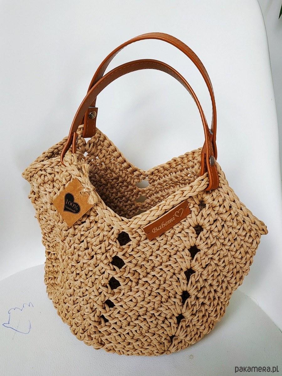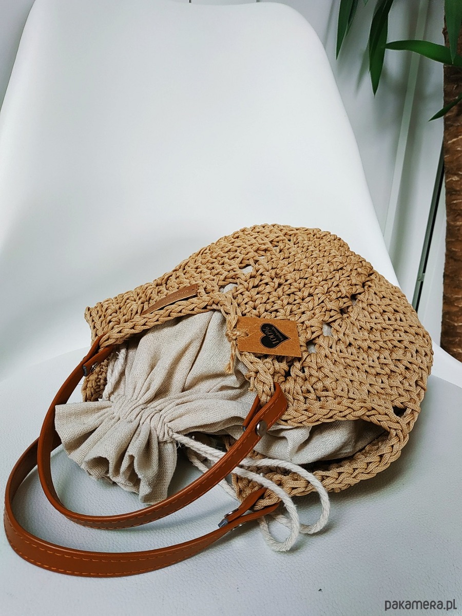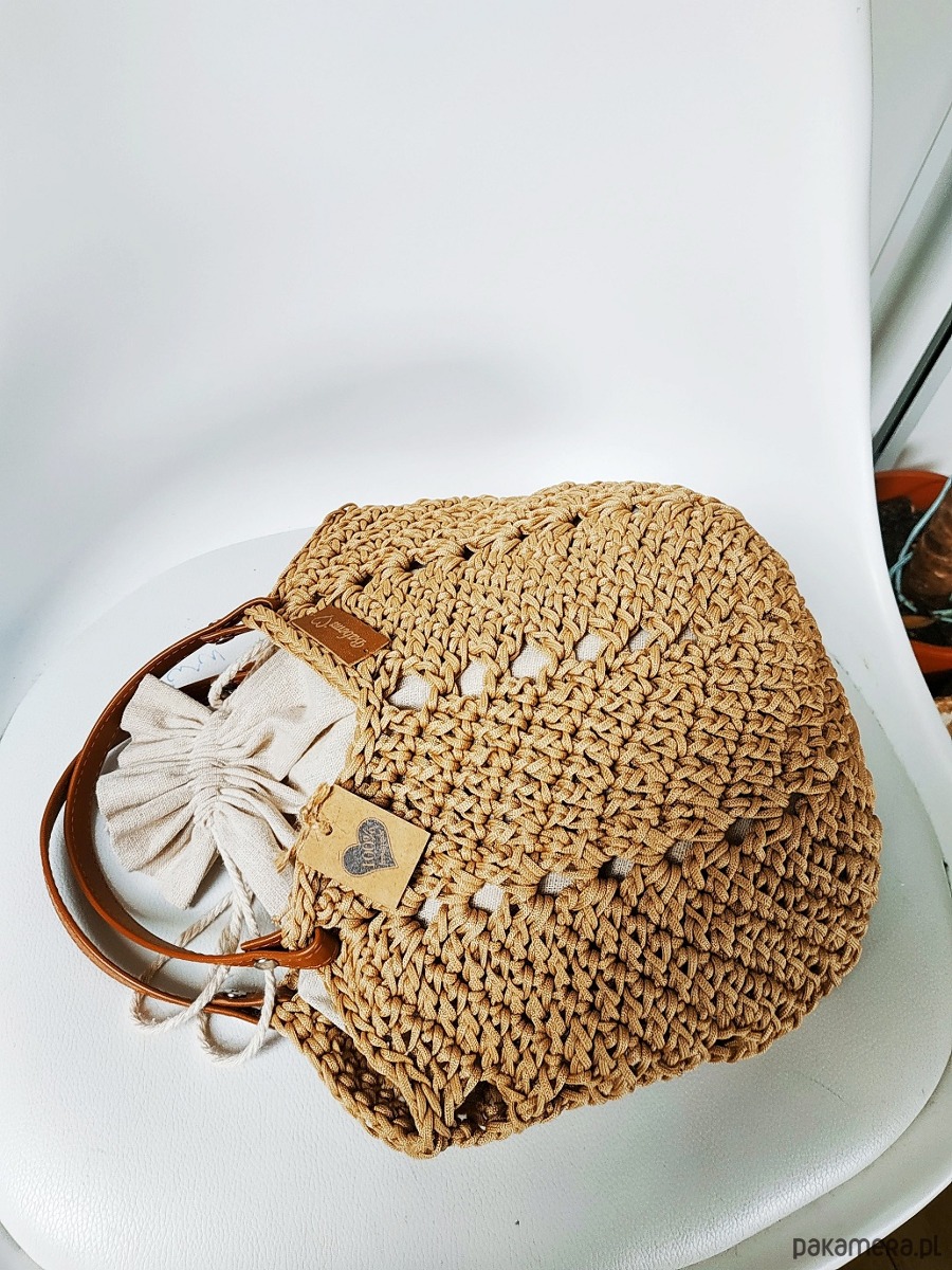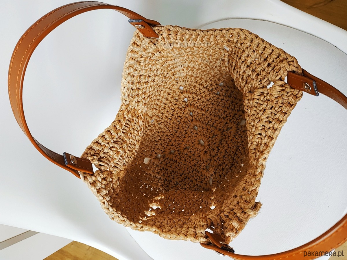 Torebka pięknie utrzymuje swój kształt, jak widać na załączonym zdjęciu. Ażurowy splot dodaje jej lekkości, i uroku.