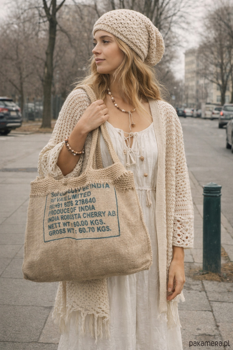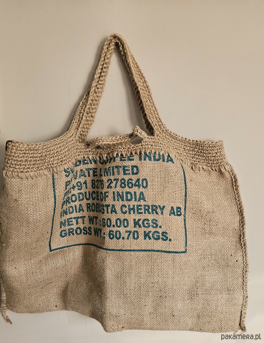Wyjątkowa torba w stylu eko-boho wykonana z autentycznego worka po kawie. Naturalna juta z oryginalnym nadrukiem nadaje jej niepowtarzalny charakter – każda sztuka ma swoją historię i jest jedyna w swoim rodzaju.