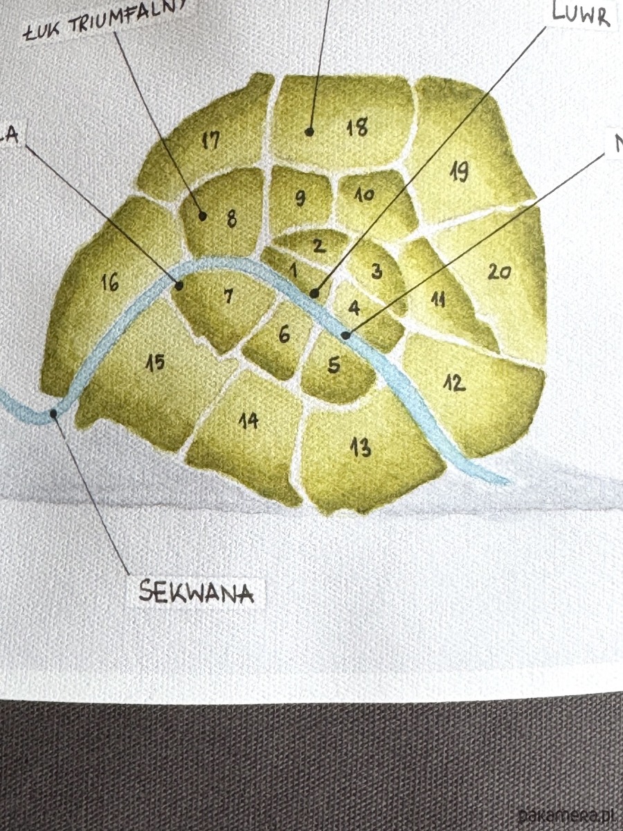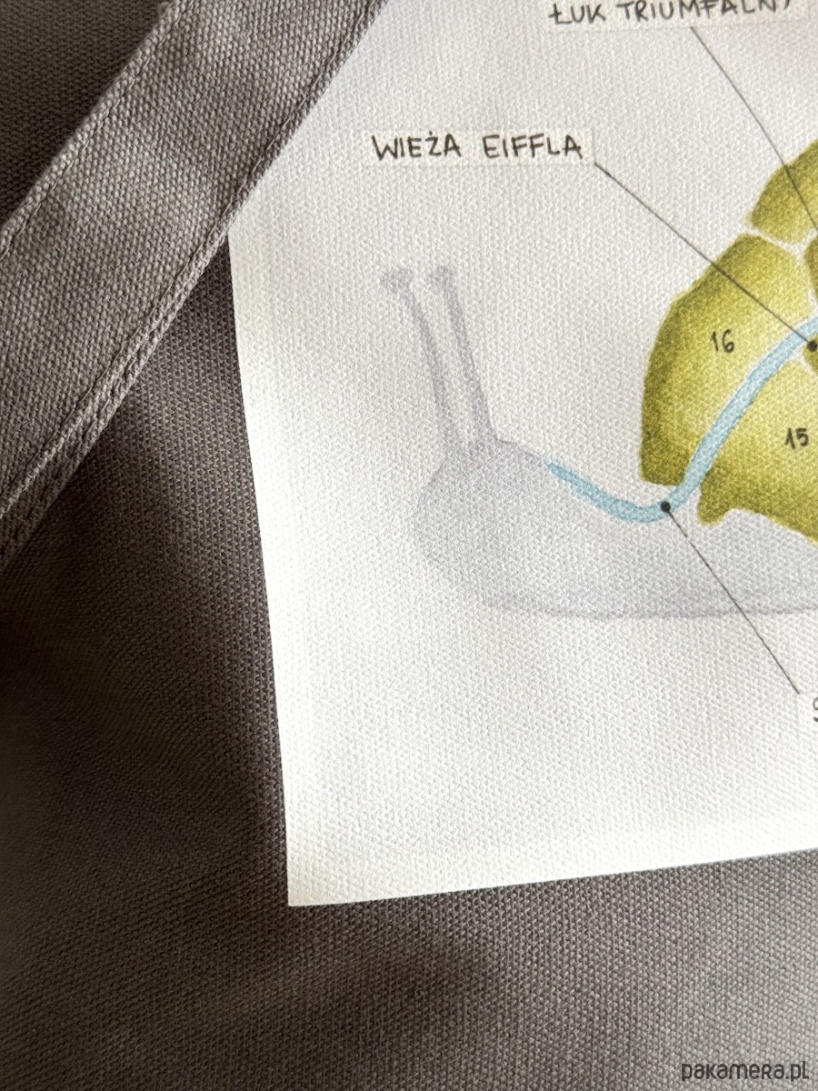 Nadruk: Ślimak - spiralnie ułożone dzielnice paryskie. Reprodukcja ręcznie malowanej ilustracji akwarelowej.
