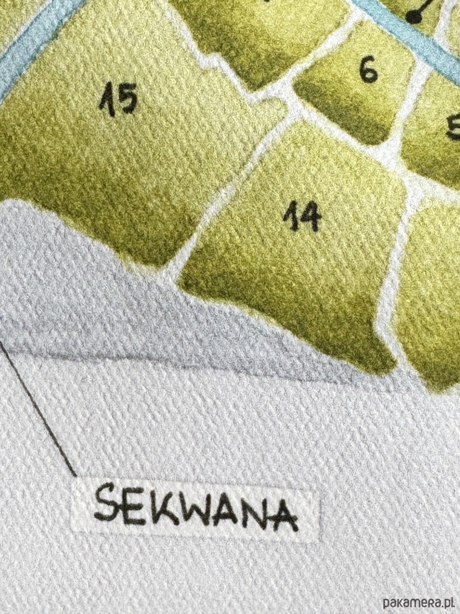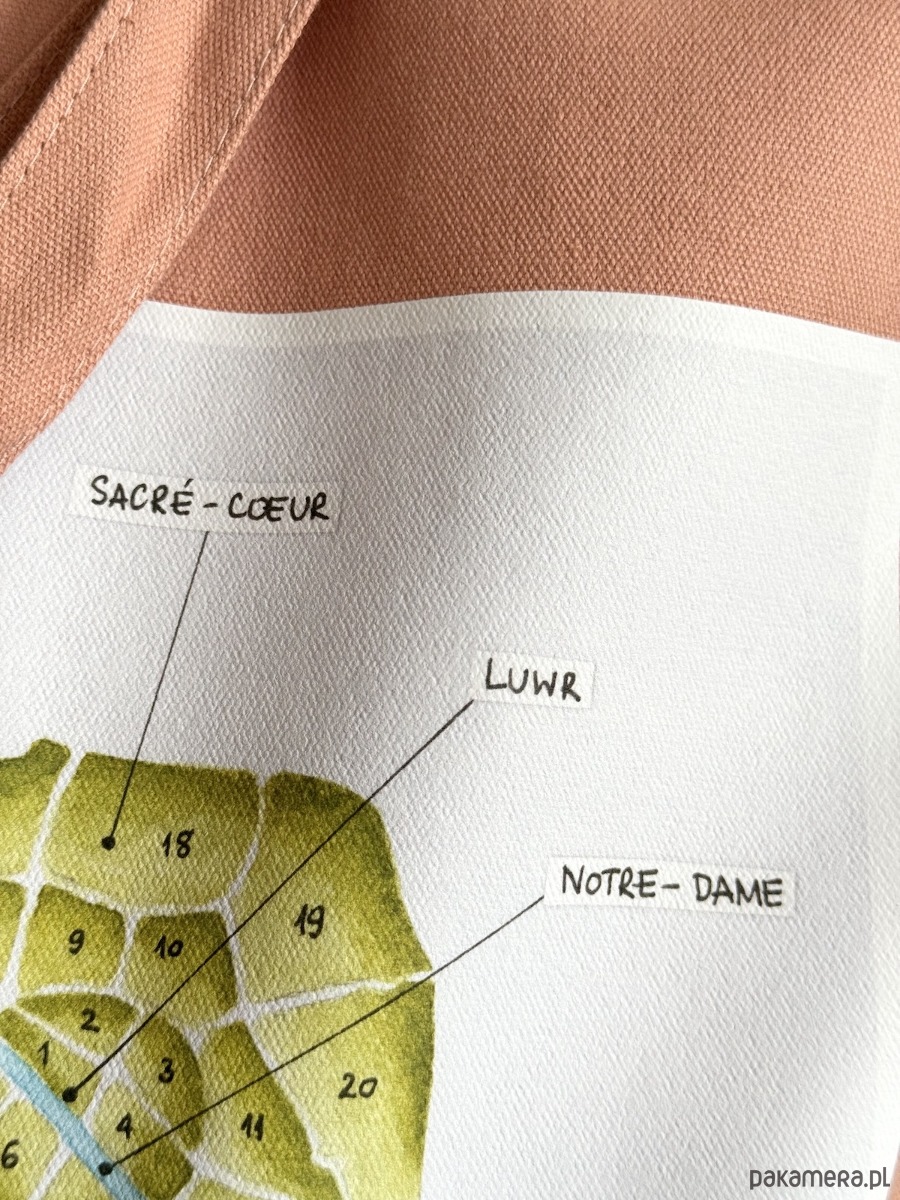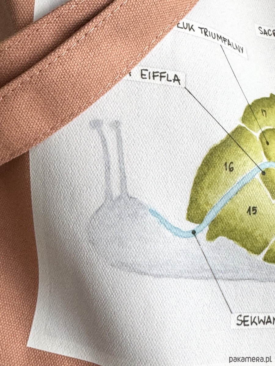Nadruk: Ślimak - spiralnie ułożone dzielnice paryskie. Reprodukcja ręcznie malowanej ilustracji akwarelowej.