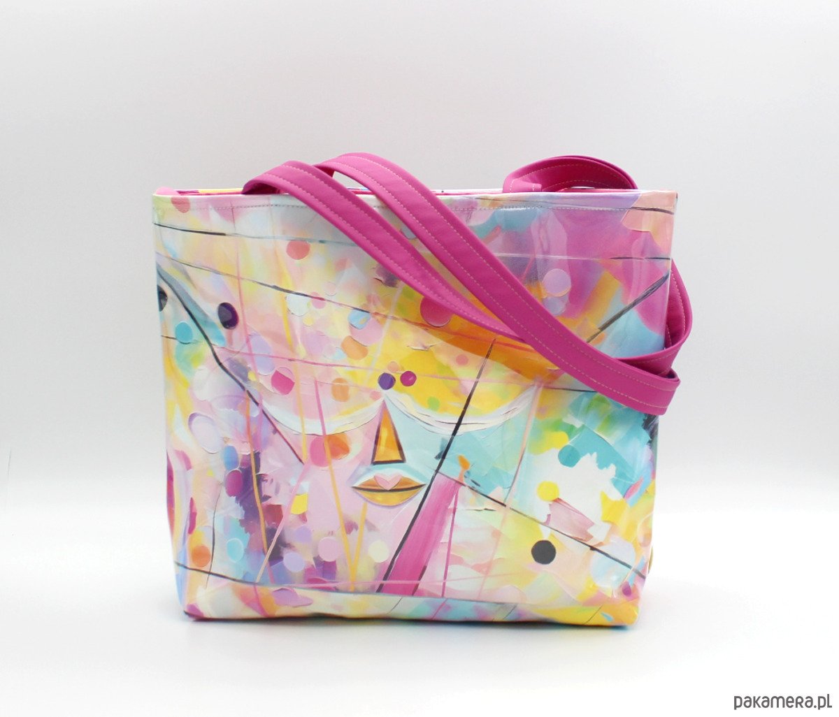 Ręcznie wykonana torba typu shopper marki PUGA to wyjątkowy dodatek, stworzony w małej polskiej manufakturze, który łączy unikalny design z dbałością o detale. Jej autorski nadruk przedstawiający twarz, namalowaną akwarelami, nadaje torbie artystycznego wyrazu i przyciąga spojrzenia. To idealna propozycja dla kobiet, które cenią oryginalność i nie boją się wyróżniać.