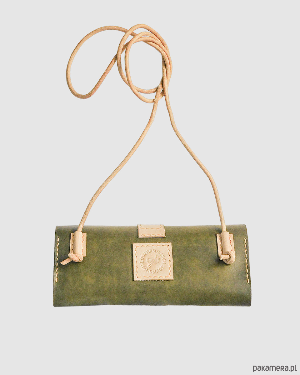 Długość rzemienia nośnego to 135 cm. Można go regulować na dwa sposoby. Pierwsza metoda to regulacja tymczasowa. Trzeba zawiązać węzeł w połowie długości tak, aby znajdował się mniej więcej na karku osoby korzystającej z futerału.