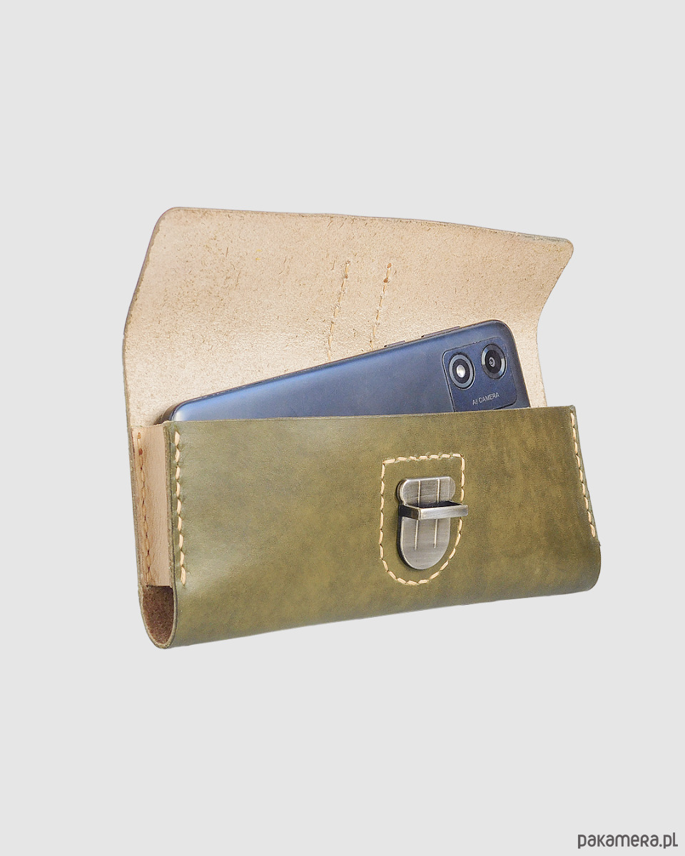 Futerał pomieści telefon o maksymalnych wymiarach 17 X 8 X 1,2 cm.
